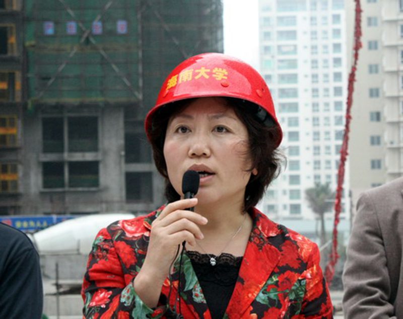 曹献坤副校长在封顶仪式上讲话。她代表学校对施工单位、监理单位以及项目管理单位等表示衷心感谢,并希望各单位继续发扬高效优质精神,高质量完成桥西教工住宅保障住房项目,将桥西小区打造成“优质工程”、“ 民生工程”、“ 满意工程”。