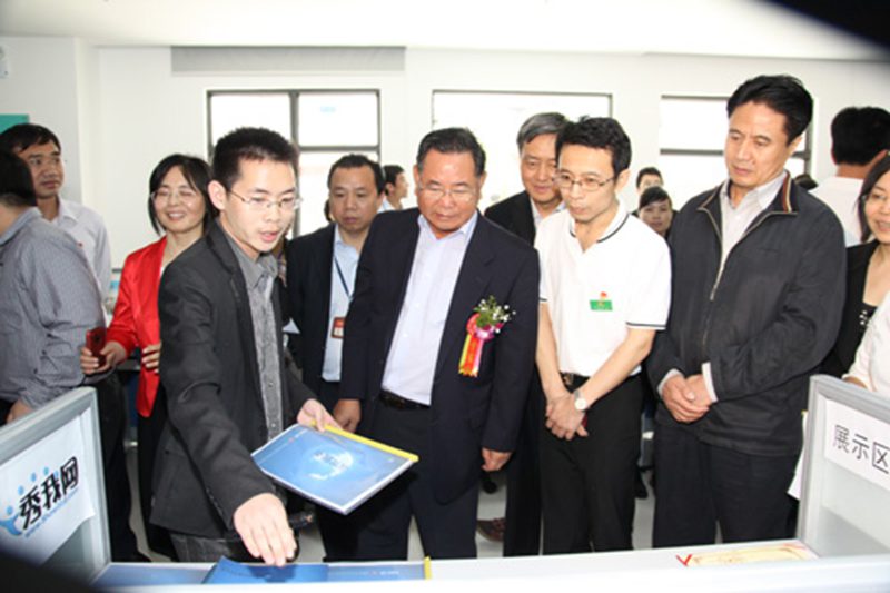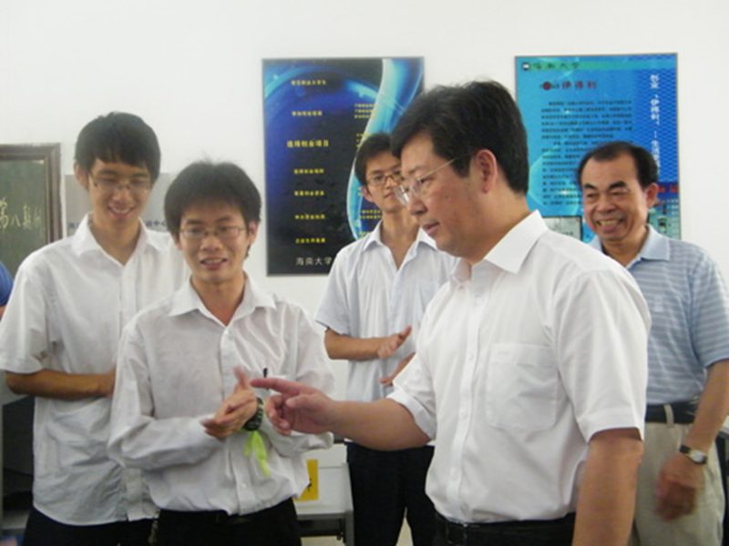 海南省委常委、组织部部长、省教育工委书记楼阳生同志听取程川介绍创业项目(左二为程川)
