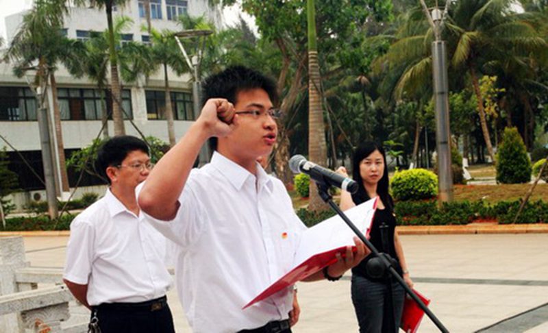 团省委宣传部部长周维参加宣誓活动。宣誓仪式由校团委书记王丽娜主持。(海大记者团 张琦琳)