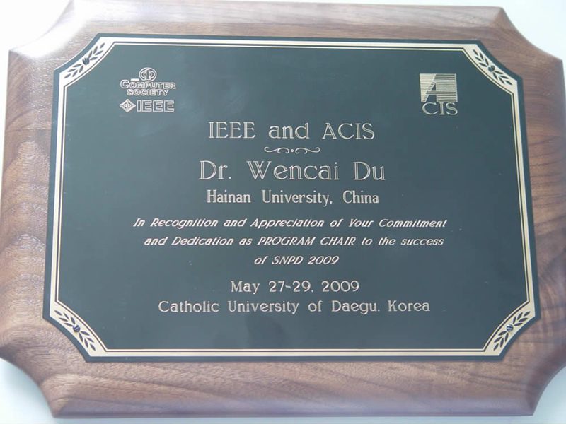 本网讯 5月27—29日,国际电气和电子工程师协会(IEEE)、国际计算机学会(ACIS)在韩国浸信大学联合召开软件工程、人工智能、分布/并行计算国际大会。会上,我校信息学院杜文才院长因其积极认真的工作态度和奉献精神,受到了国际电气和电子工程师协会、国际计算机学会的表彰,并颁发了奖牌。同时受表彰还有美国德克萨斯大学奥斯汀分校和日本爱智大学的两位教授。