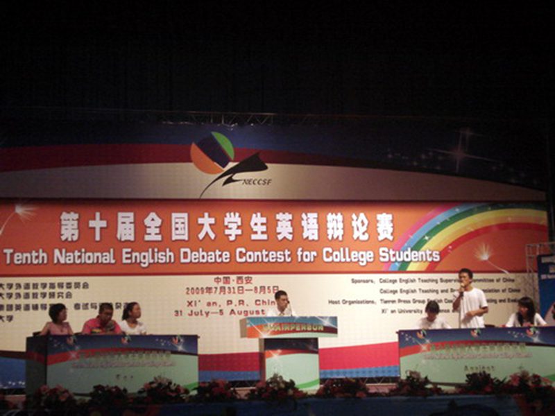 全国大学生英语竞赛是由高等学校大学外语教学指导委员会和高等学校大学外语教学研究会联合举办,英语辅导报社承办的全国唯一的大学生英语综合能力竞赛活动,已举办九届。我校从2002年起已连续参加六届。总决赛及夏令营活动全国有29个省市区200多所高校510名选手参赛,我校选手参加了总决赛及夏令营活动的所有活动。总决赛及夏令营活动包括:第十届全国大学生英语演讲赛、第十届全国大学生英语辩论赛、第三届全国大学生英语风采大赛、2009年全国优秀大学生英语学习经验交流会等。