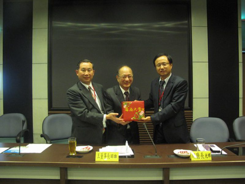 与嘉南药理科技大学王昭雄董事长互赠纪念品