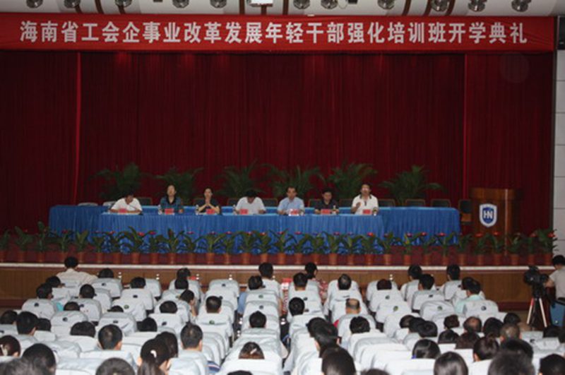 5月10日上午,海南省工会企事业年轻干部强化培训班开学典礼在我校办公楼二楼报告厅举行。海南省人大常委会副主任、省总工会主席符兴,我校党委书记刘康德教授,海南省总工会巡视员徐天仁,我校副校长傅国华教授,海南省总工会副主席徐远航、郝振声,海南省总工会经费审查委员会主任揭晓强,海南省总工会副巡视员陈文霞,我校经济与管理学院院长胡国柳教授出席开学典礼。海南省总工会常务副主席陈菁主持典礼。全省各市县总工会、部分产业(系统)工会以及省直属基层干部共400余人参加开学典礼。