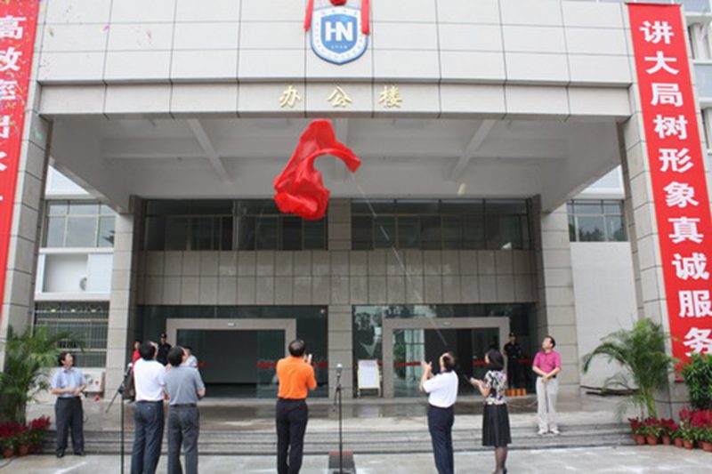 装修一新的我校机关新办公楼(原学校1号楼)今日正式启用。上午7:50,全体校领导和机关工作人员在新办公楼前广场举行简短的启用搬迁仪式。刘康德书记和李建保校长共同为新办公楼揭牌。
