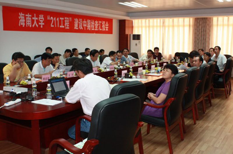 7月12日下午,海南省教育厅检查组到我校检查“211工程”三期建设进展情况。教育厅副厅长、检查组谭基虎、高教处处长张超、财务审计处处长王孝云、高教处副处长韩中泽,省发改委社会发展处副处长文红,省财政厅教科文处副处长吴泳;我校党委书记刘康德,副校长周兆德、林强、刁晓平出席会议。我校“211工程”三期建设项目负责人、“211工程”建设办公室及有关职能部门负责人参加了会议。