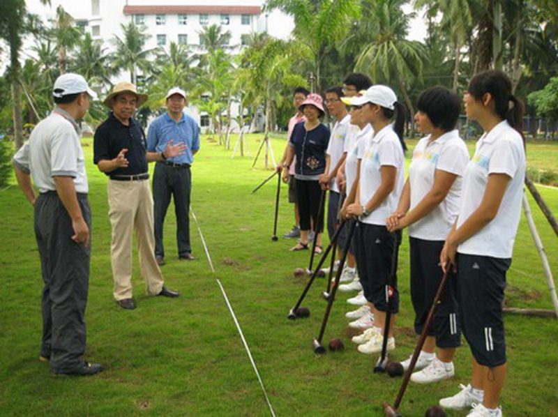 8月29日上午,刘康德书记和傅国华副校长亲临我校“金桥”木球场现场,为即将代表国家出征国际比赛的海大木球队加油、鼓劲,并与木球队员一起体验木球运动。