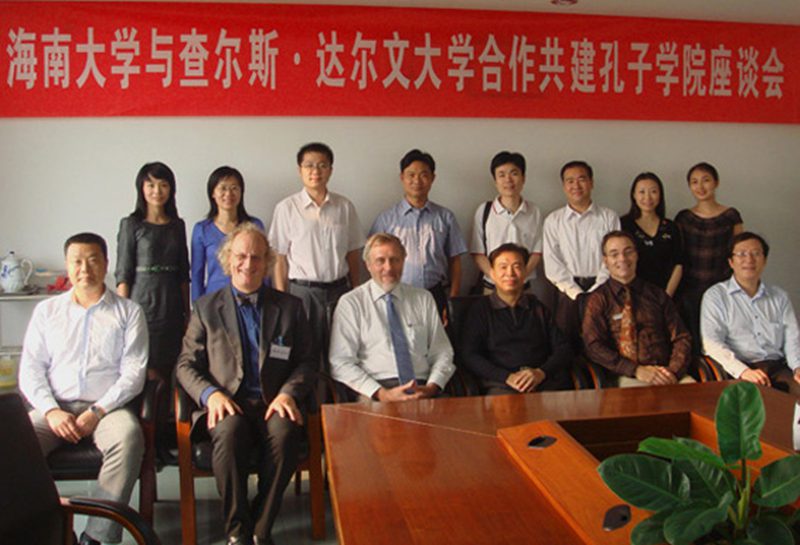 19日下午,海南大学与查尔斯•达尔文大学合作共建孔子学院座谈会在我校举行,我校副校长严庆教授,人文传播学院、艺术学院、外事侨务处(国际文化交流学院)等有关单位负责人,查尔斯•达尔文大学副校长鲍勃•沃森教授、创意艺术与人文学院院长比尔•韦德教授、创意艺术与人文学院音乐系主任马丁•贾维斯博士等出席了会谈,商讨两校合作建立孔子学院事宜。达尔文大学表示共建孔子学院是两校合作的核心项目,并提出创办出一所具有创意的孔子学院,以新媒体技术与创意艺术作为一个创新点。严庆副校长表示我校会大力支持并积极配合两校合作共建孔子学院,并明确指出孔子学院的申办要在国家汉办孔子学院章程的指导下进行,以期早日申办成功。