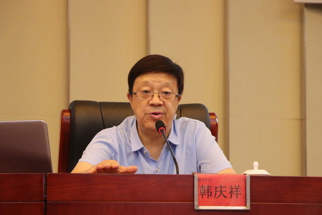 本站讯(记者/摄影 张文沛)10月14日下午,海南大学在社科楼二楼报告厅召开《习近平谈治国理政》第三卷学习报告会暨校党委理论学习中心组(扩大)学习会议。中央党校副教育长兼哲学教研部主任韩庆祥教授应邀作专题学习辅导报告。海南大学全体在校领导班子成员出席报告会。会议由党委常委、副校长曹宪忠主持。