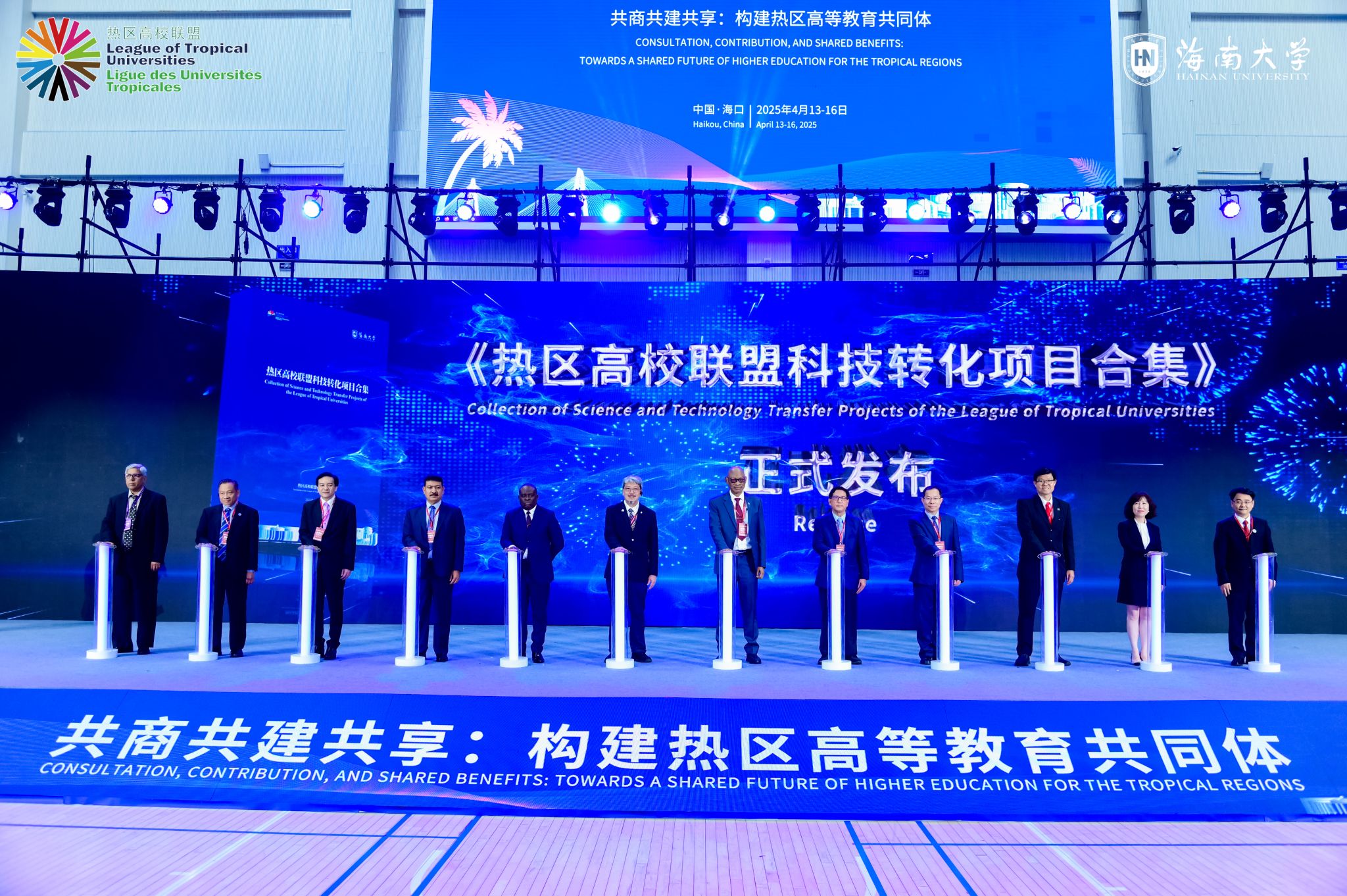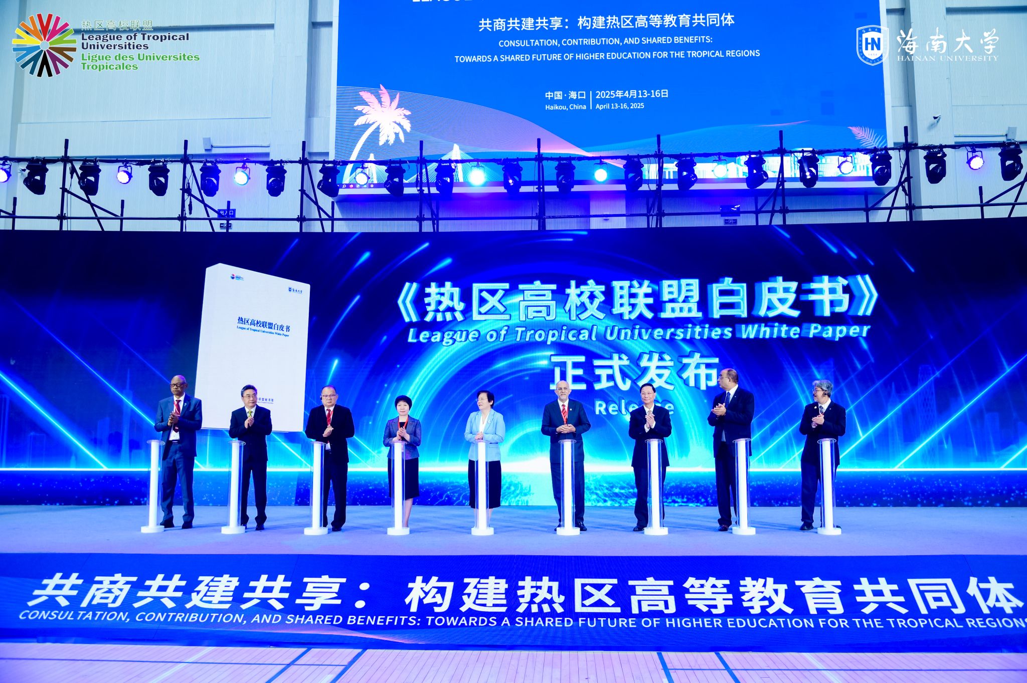 4月14日上午,热区高校联盟2025年年会在海南大学体育馆开幕。这是《热区高校联盟白皮书》发布现场。宣传部 摄