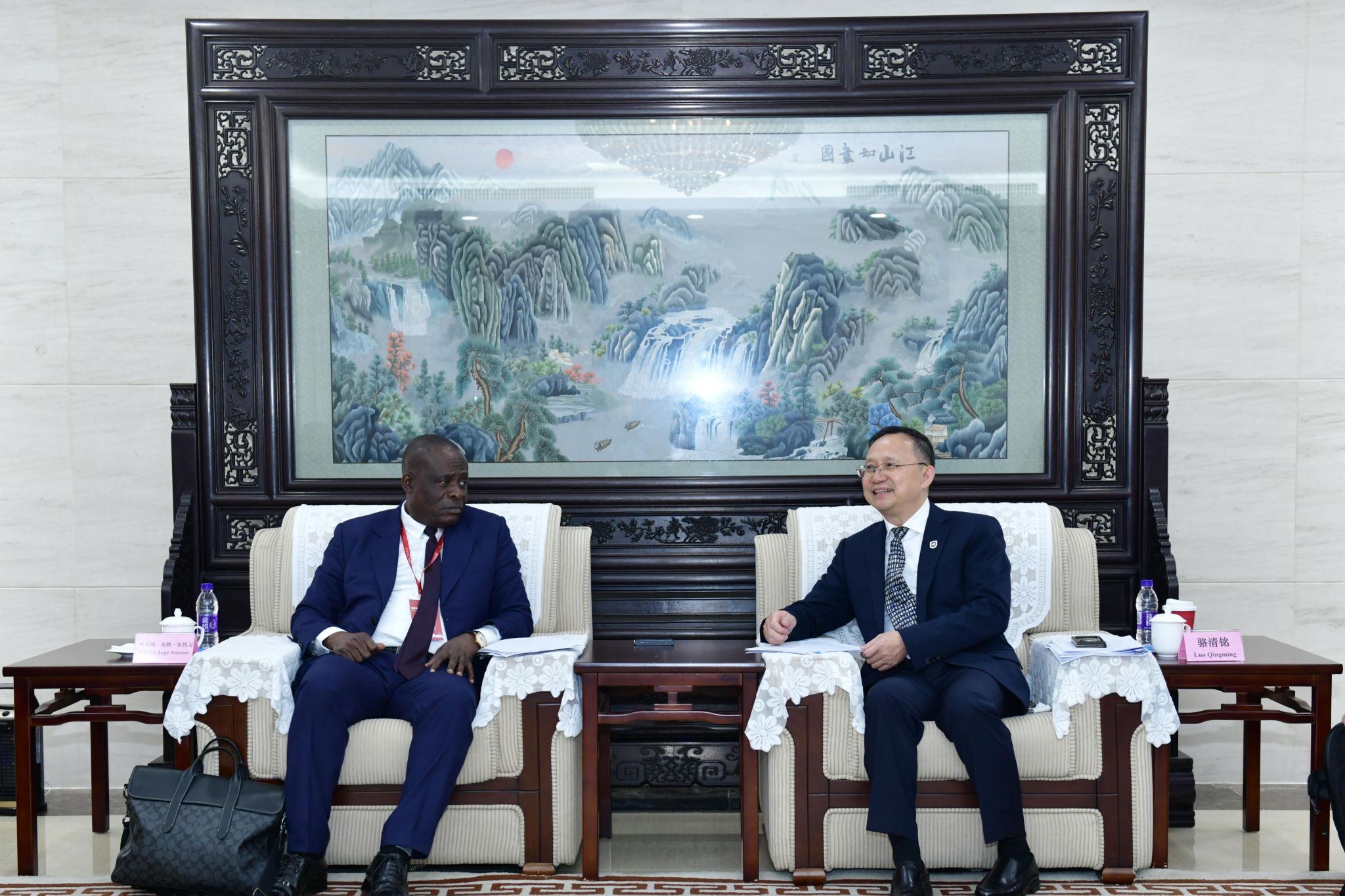 4月14日下午,骆清铭在国际学术交流中心和心厅会见刚果(布)德尼·萨苏—恩格索大学校长阿贝纳一行。宣传部 摄