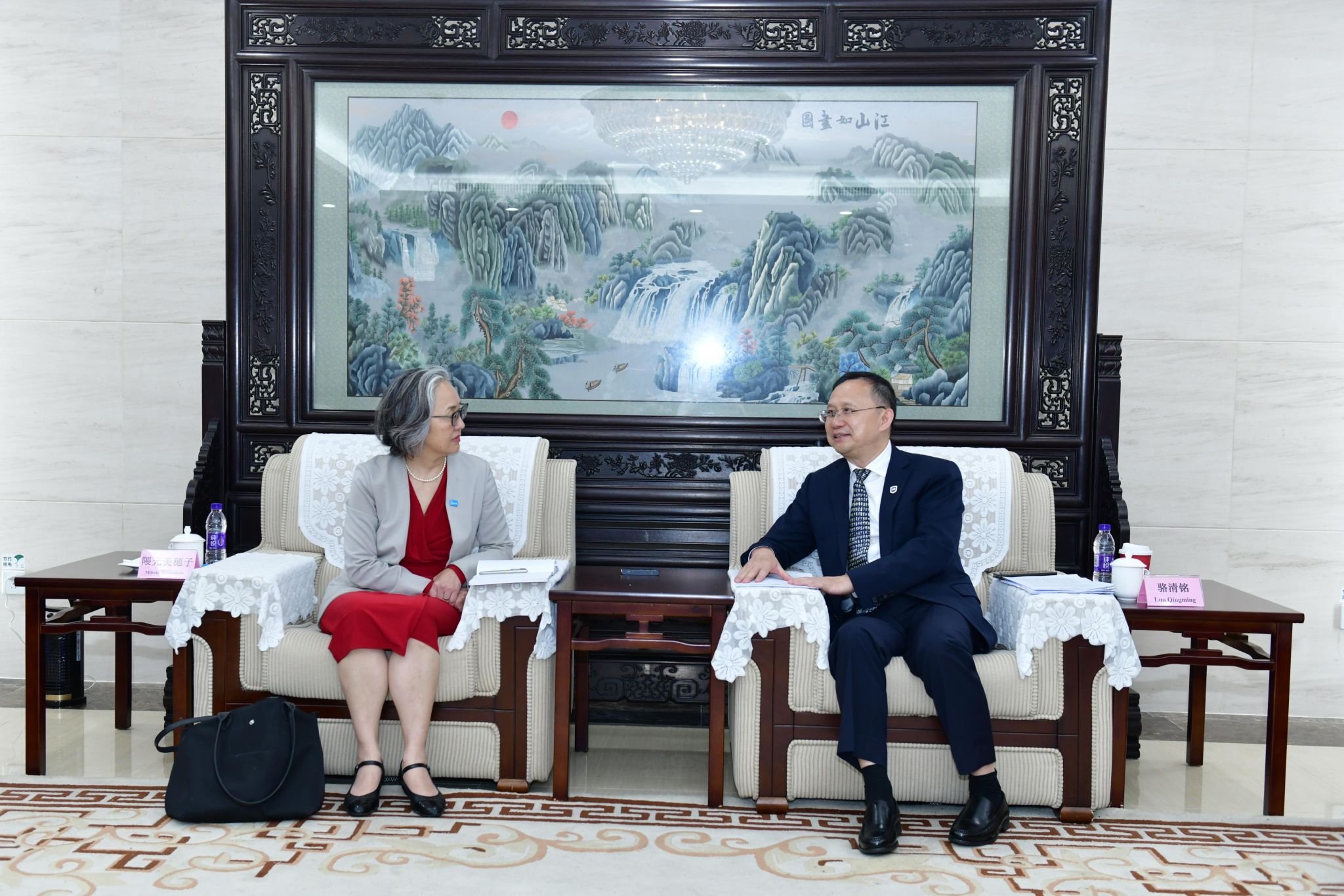 4月14日下午,骆清铭在国际学术交流中心和心厅会见联合国训练研究所繁荣司司长隈元美穗子一行。宣传部 摄