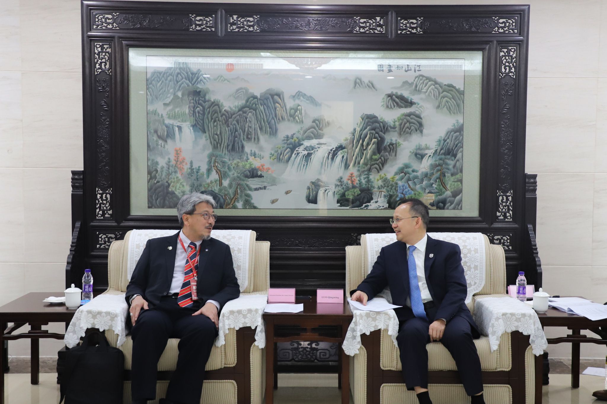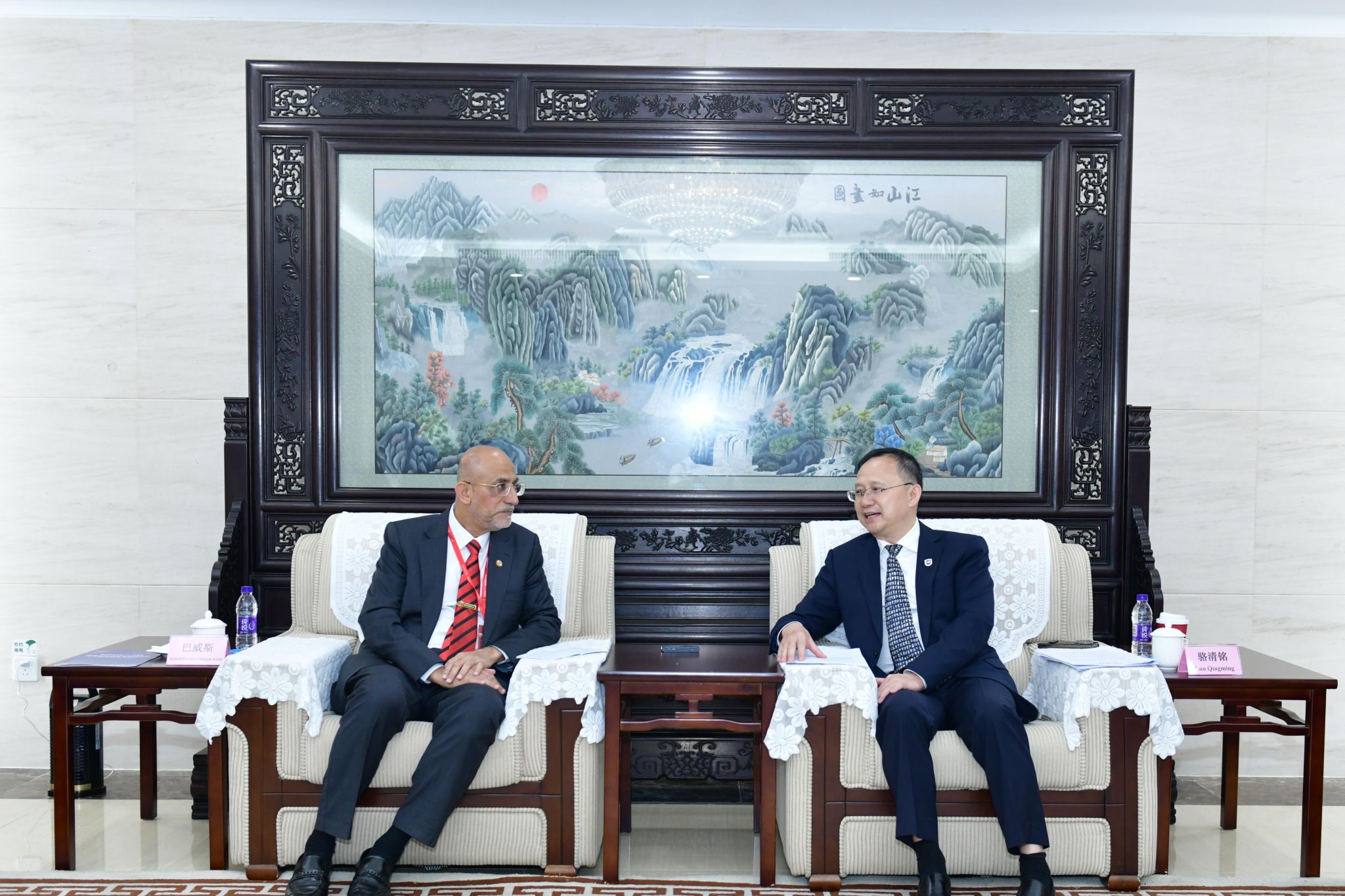 4月13日上午,骆清铭在国际学术交流中心和心厅会见马来西亚国油科技大学校长穆罕默德·易卜拉欣·阿卜杜勒·慕达立一行。杨梦娜 摄