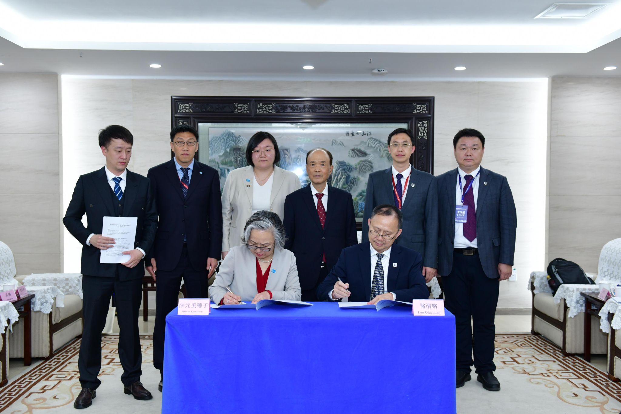 会见中,隈元美穗子与骆清铭分别代表联合国训练研究所、海南大学签署合作协议。