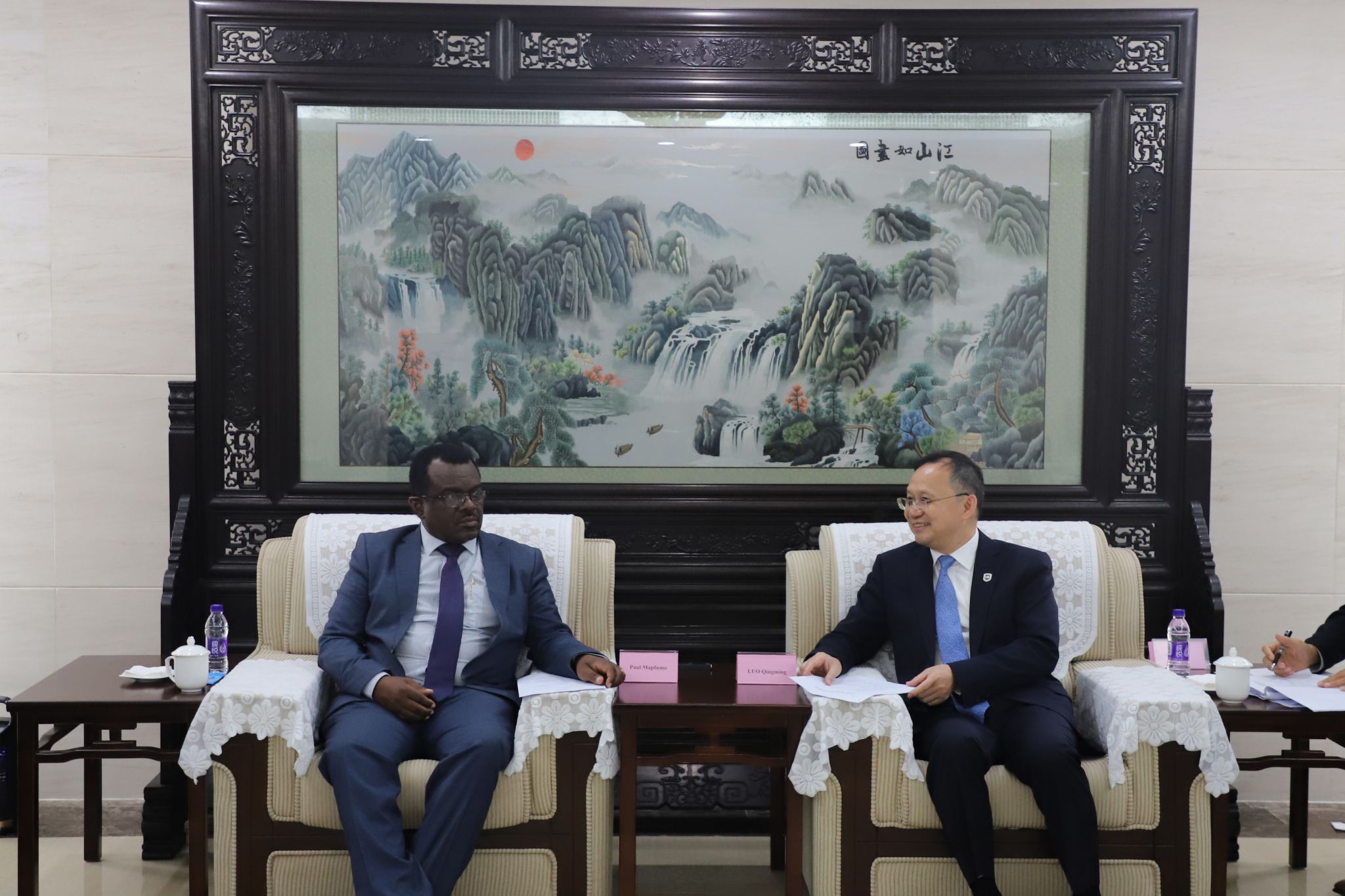 4月13日上午,骆清铭在国际学术交流中心和心厅会见津巴布韦大学校长保罗·马弗莫一行。杨梦娜 摄