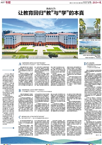 海南大学的改革实践实现了三重突破:在教育维度上完成从知识传授到创新素养培养的转换;在社会维度上构建起高校支撑区域发展的新型合作关系;在国家维度上探索出高等教育服务重大战略的实施路径。这种将人才培养深度嵌入国家战略进程和自贸港建设发展的育人模式,为新时代高等教育改革提供了具有示范意义的“海大方案”。