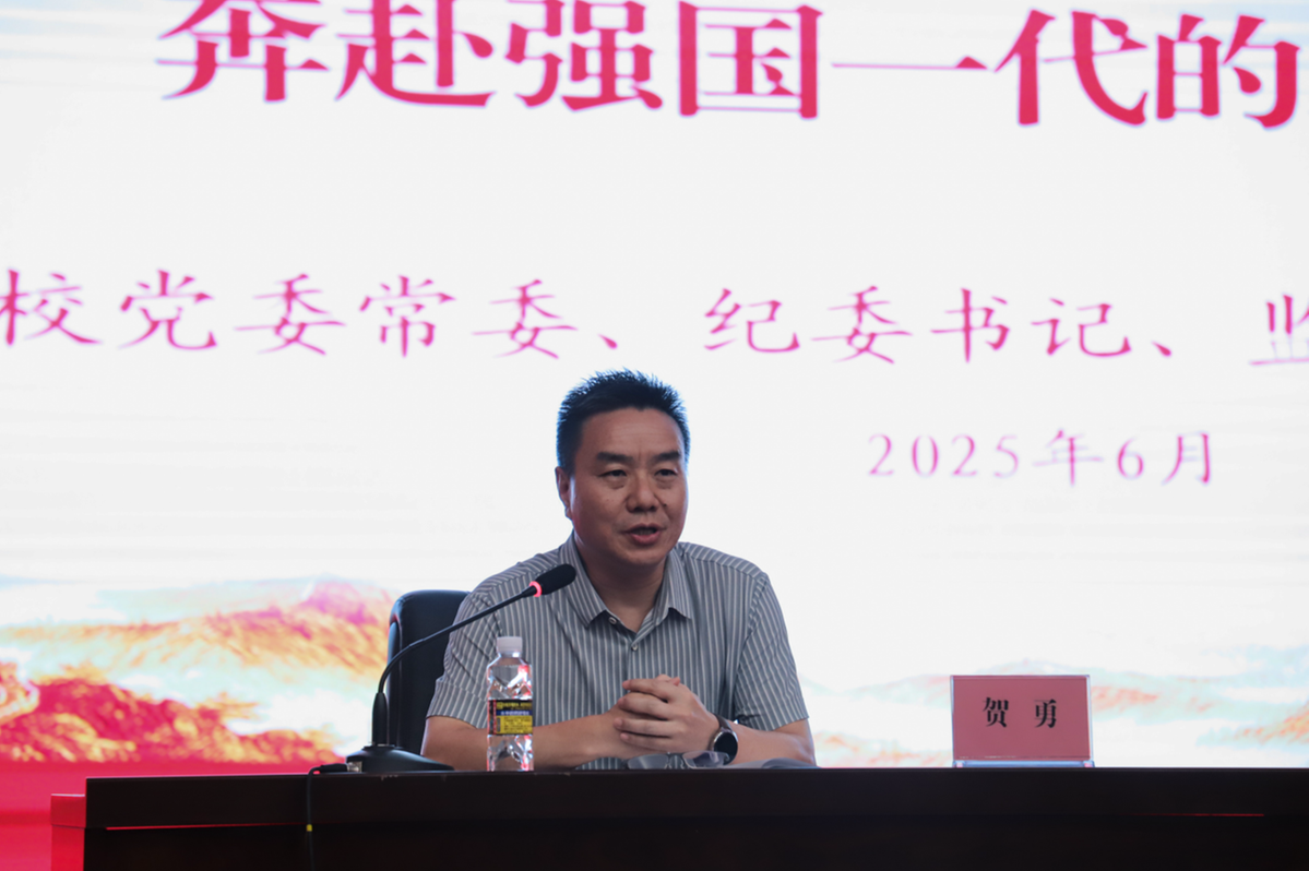 (6月13日下午,海南大学举行毕业生党员警示教育会,贺勇作报告 陈思甜摄)