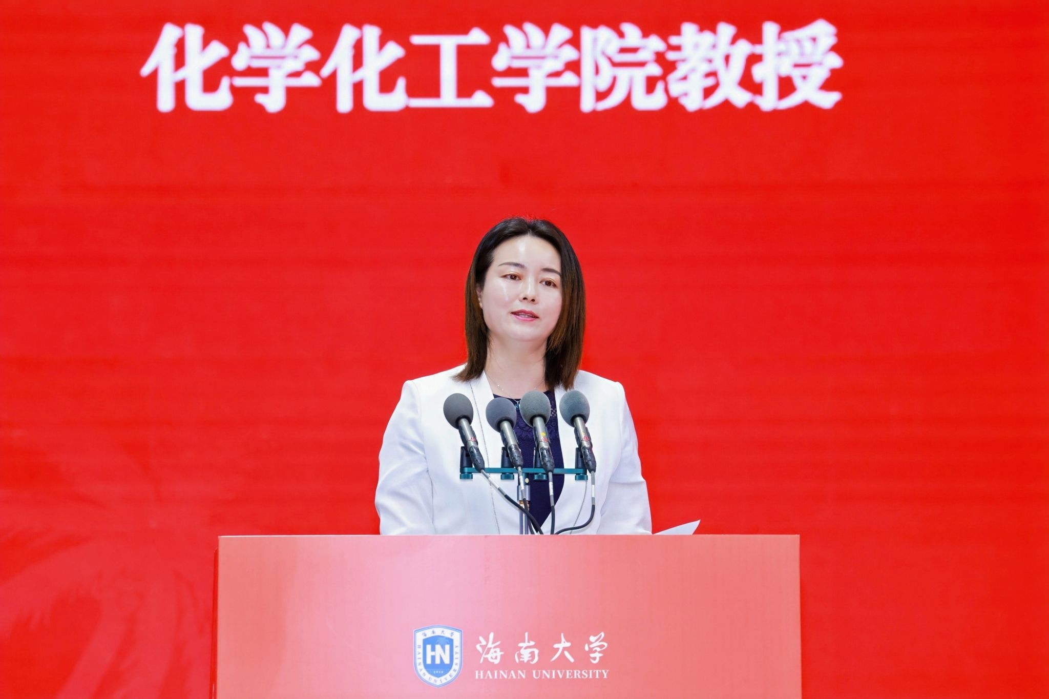 6月18日上午,教师代表王小红在海南大学2025年本科生毕业典礼暨学士学位授予仪式上发言。宣传部 摄