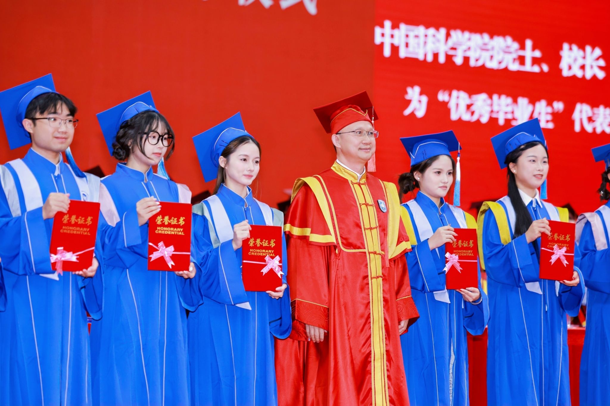 6月18日上午,骆清铭在海南大学2025年本科生毕业典礼暨学士学位授予仪式上为“优秀毕业生”代表颁奖。 宣传部 摄