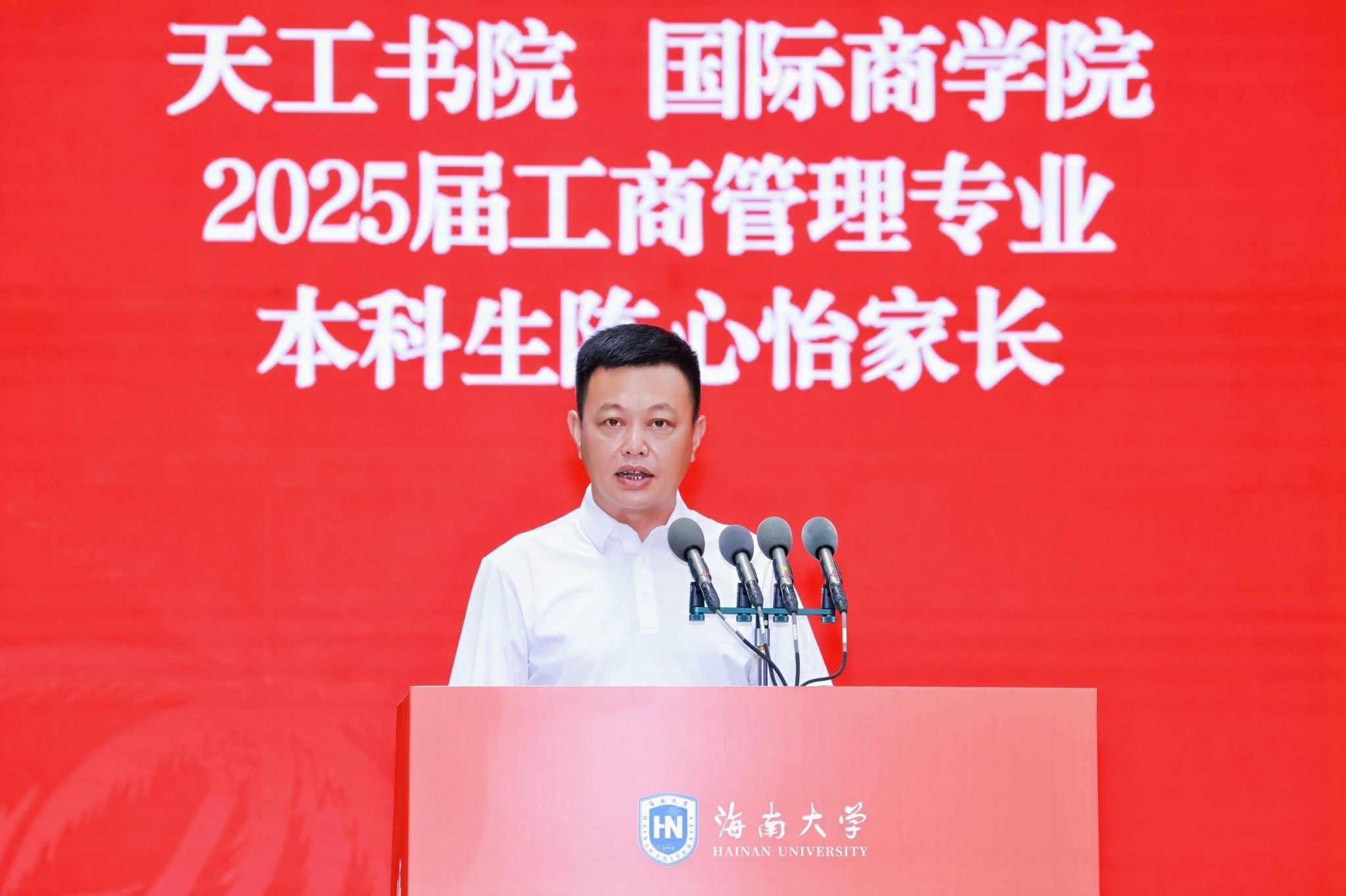 6月18日上午,家长代表陈家刚在海南大学2025年本科生毕业典礼暨学士学位授予仪式上发言。宣传部 摄