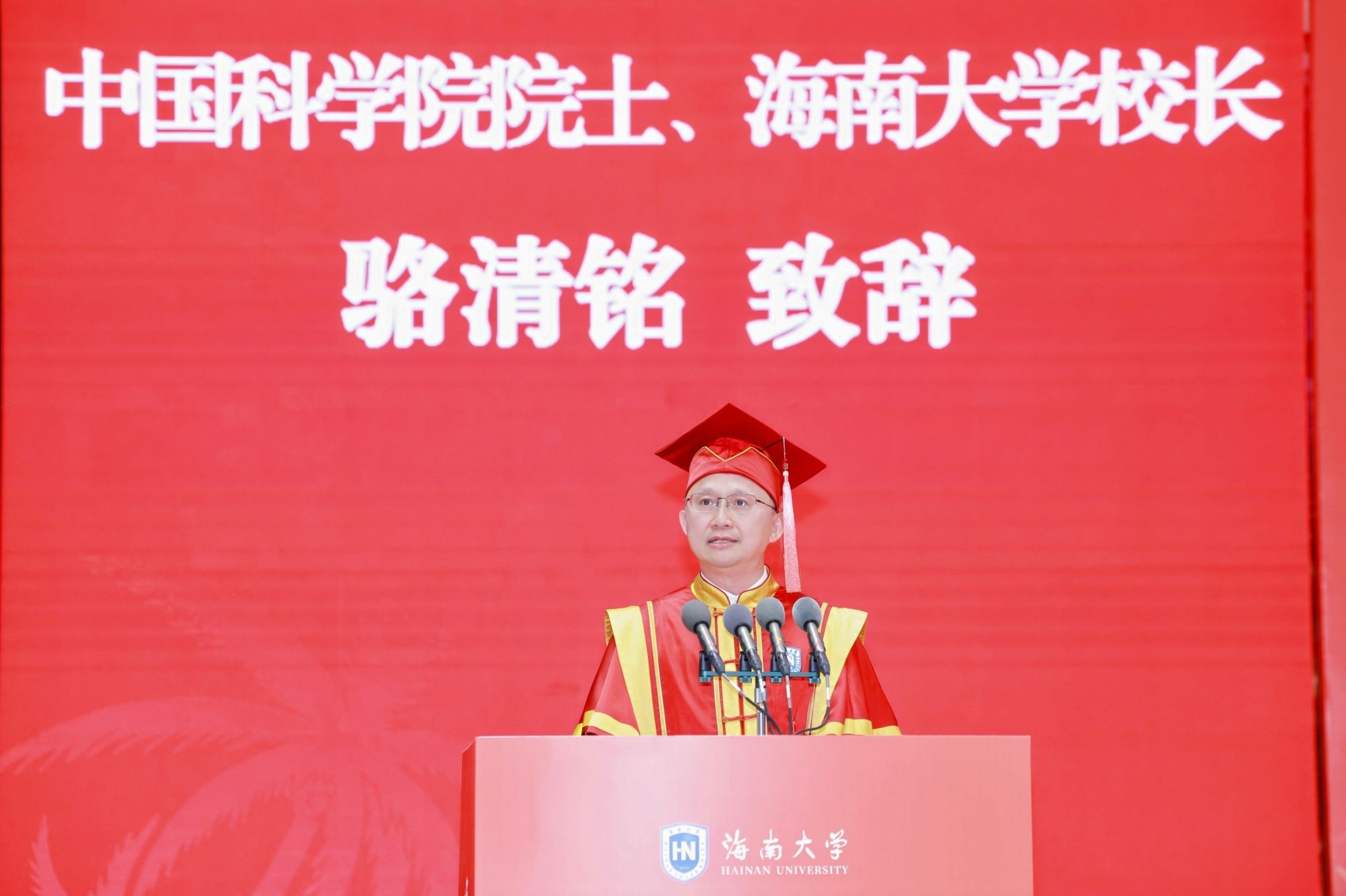 6月18日上午,骆清铭在海南大学2025年本科生毕业典礼暨学士学位授予仪式上致辞。宣传部 摄
