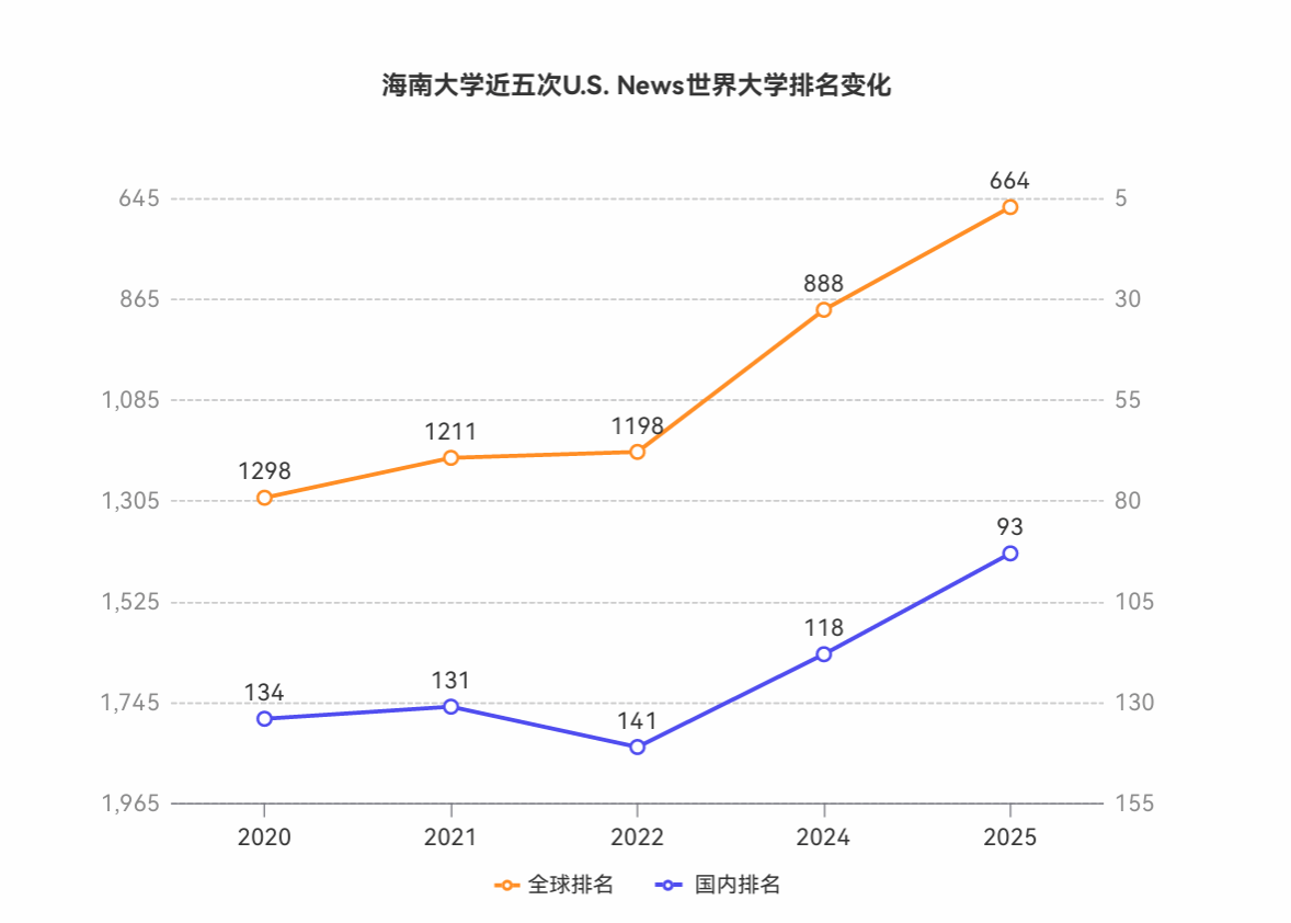 本站讯(记者 林春靓 郑润泽)6月17日,《美国新闻与世界报道》(U.S.News)发布了2025-2026年度世界大学排名和学科排名,海南大学在世界大学排名中较2020年跃升634位至第664名;在中国内地上榜的397所高校中,海南大学较2020年上升41位至第93名。学科排名方面,海南大学共21个学科上榜,其中海洋和淡水生物学、食品科学技术、农业科学跻身全球前100名,分别位列第25名、第32名、第77名。