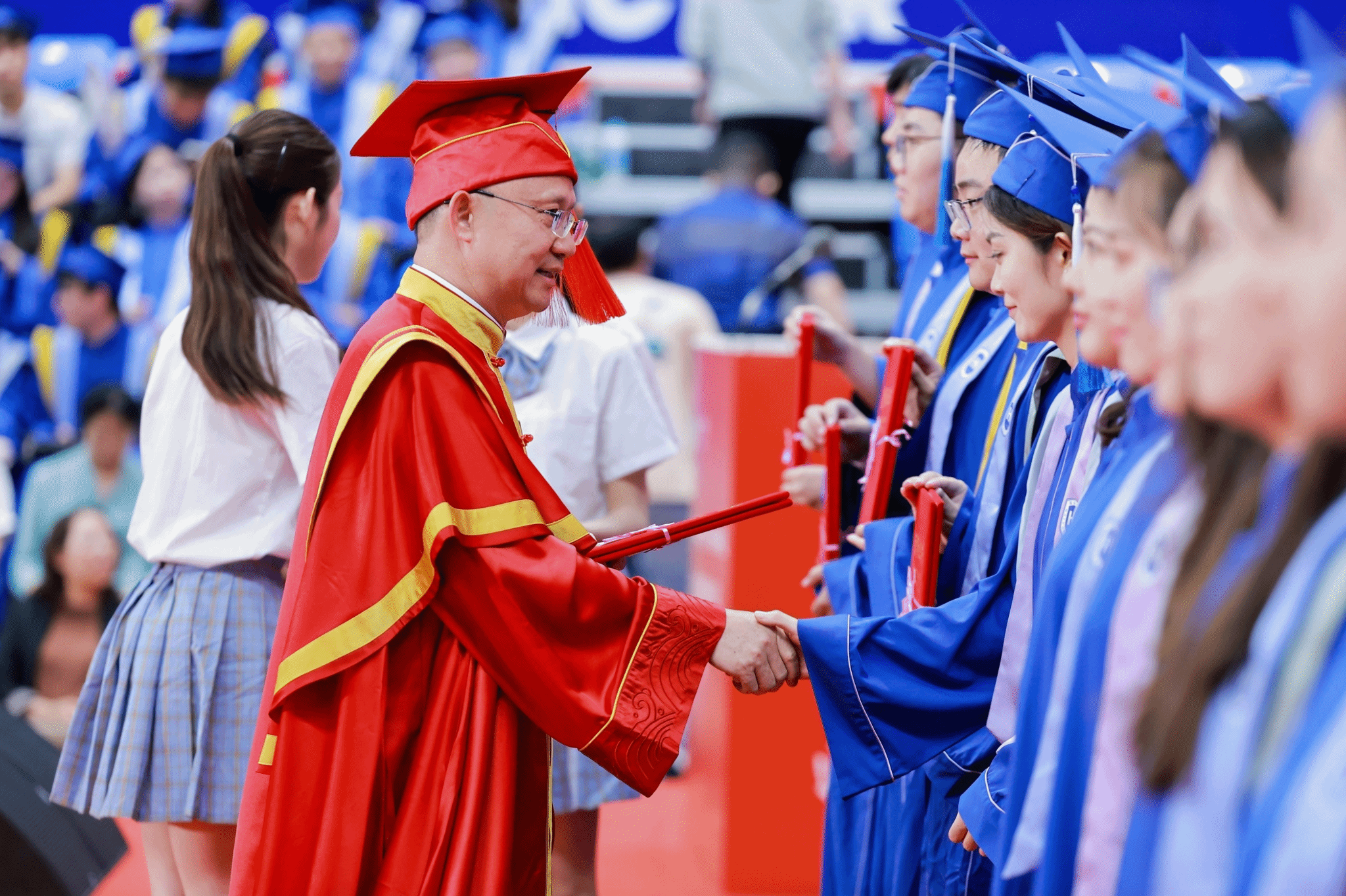 骆清铭以“自贸潮头立自信,研途扬帆向新程”为题致辞。他指出,2025届研究生毕业生既有深耕学术前沿的钻研精神,又不拘泥于现有理论的桎梏;既有“板凳甘坐十年冷”的坚守定力,又不畏惧“从零开始”的创新挑战;既能在独立研究中发出个人之问,又能在团队协作中实现协同突破。