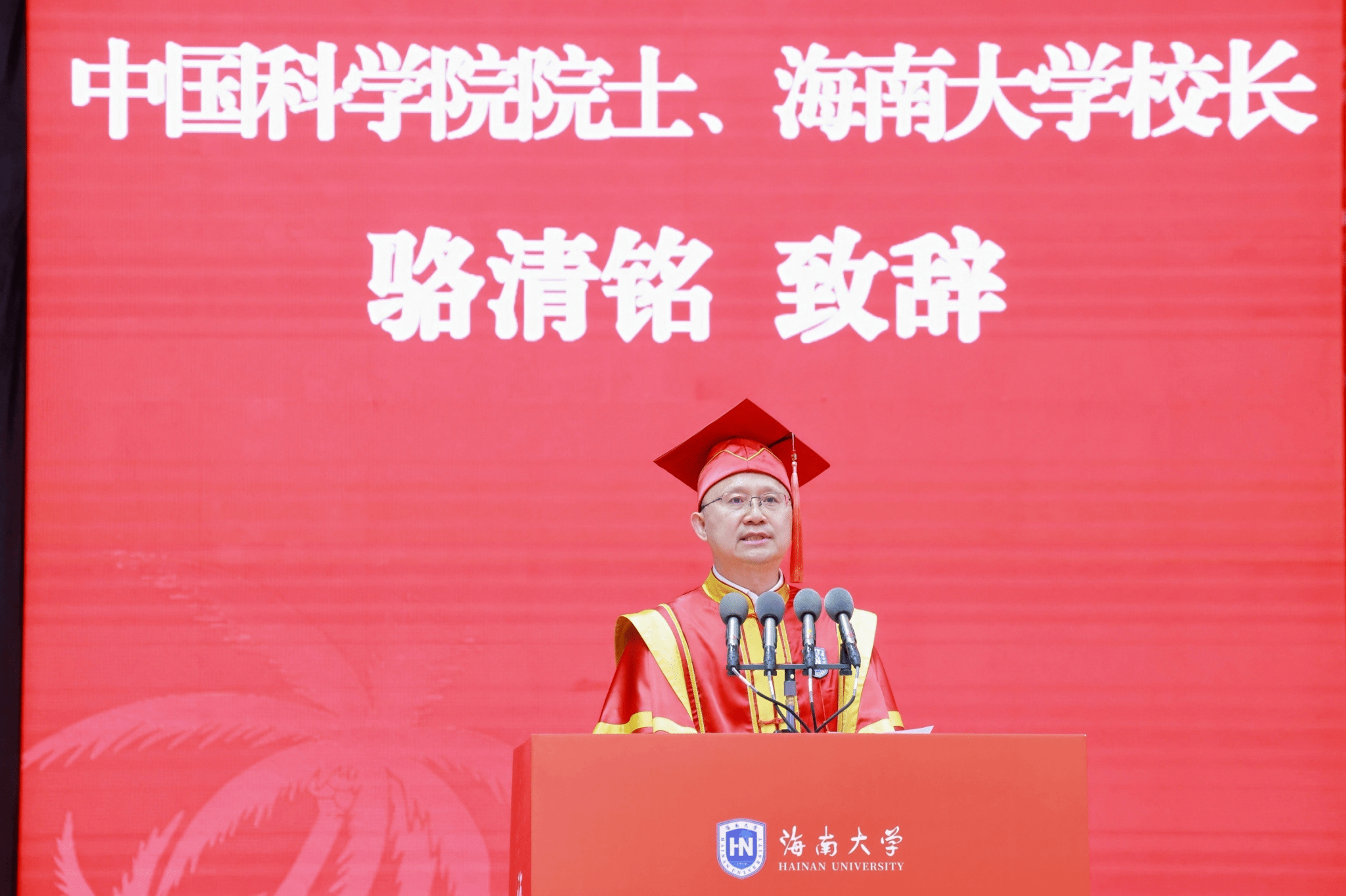 6月19日上午,骆清铭在海南大学2025年研究生毕业典礼暨硕士、博士学位授予仪式上致辞。宣传部 摄