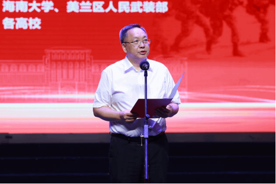 张继友在致辞中指出,海南大学党委深入学习贯彻习近平强军思想,坚持党管武装原则,探索形成“134”大学生征兵工作模式,为服务国防事业建设输送高质量兵员,学校先后被评为全国普通高校毕业生预征工作先进单位、全省征兵工作先进单位。涌现出第十四届全国人大代表王亚茹、获“联合国和平荣誉勋章”杨宝玲等献身国防的榜样学子。