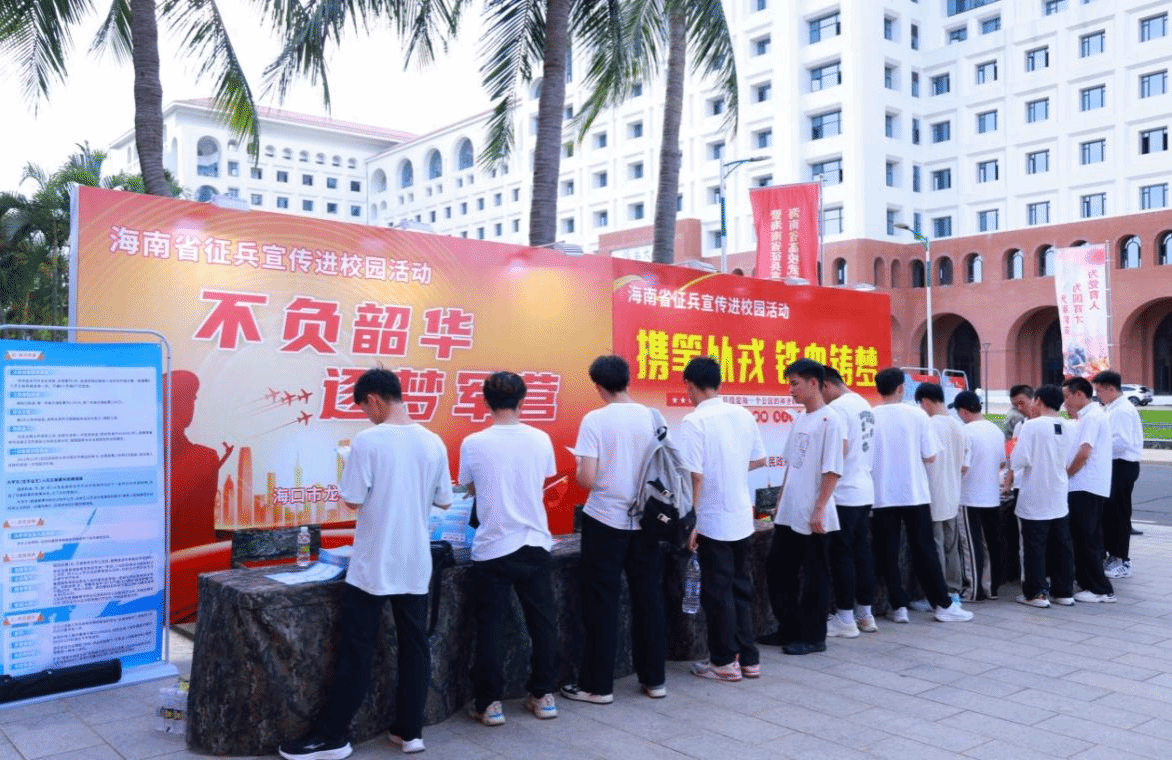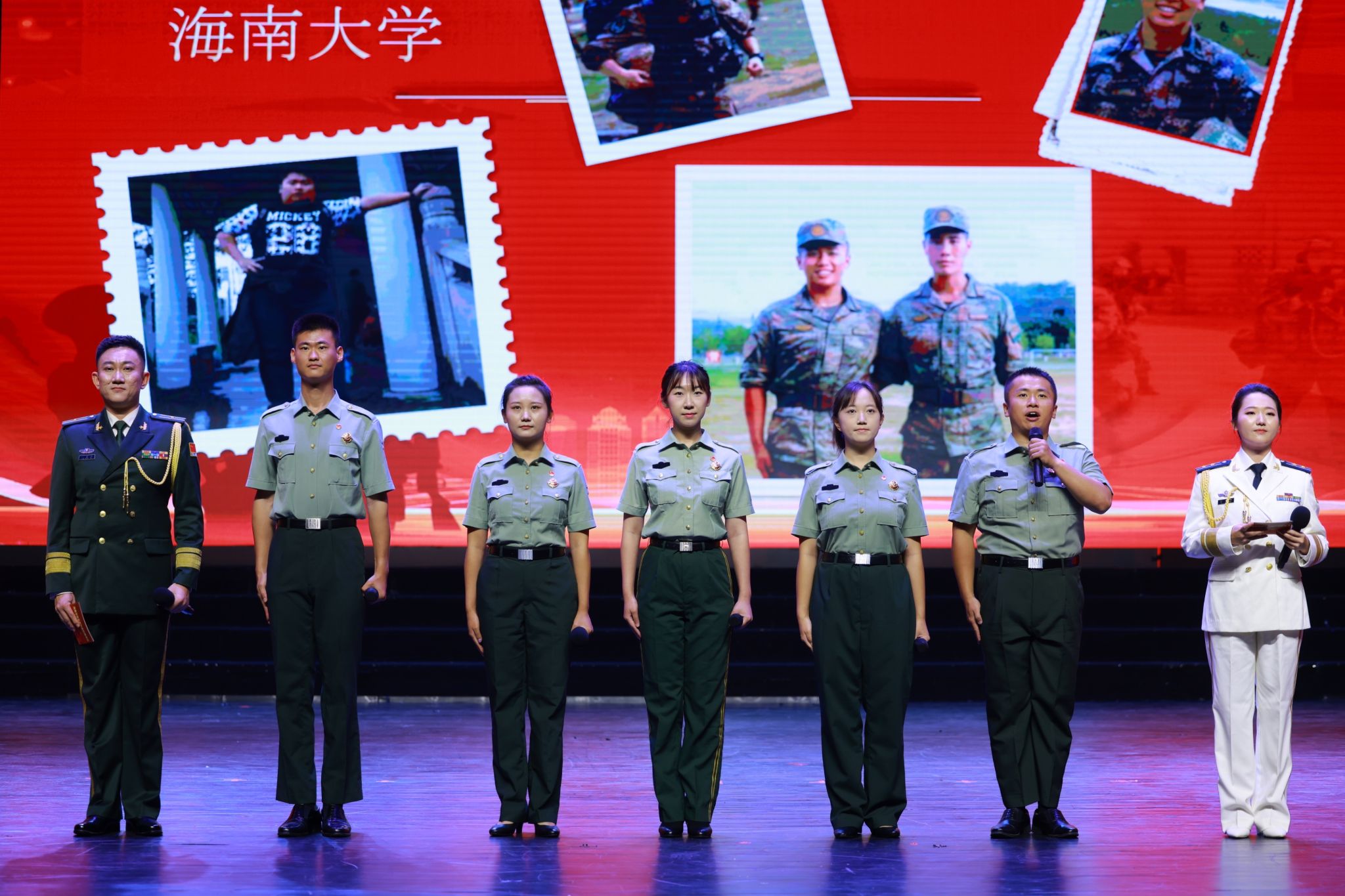 海南大学军事理论教研室主任黄海宁副教授作征兵宣讲;琼崖纵队第一副司令、海南军区首任第一副司令吴克之之女吴晓媛亲临现场讲述琼崖革命先烈英雄故事;海南省各高校优秀大学生士兵代表分享参军入伍成长历程,激励同学们将爱国心转化为报国志,以火热青春投身绿色军营。