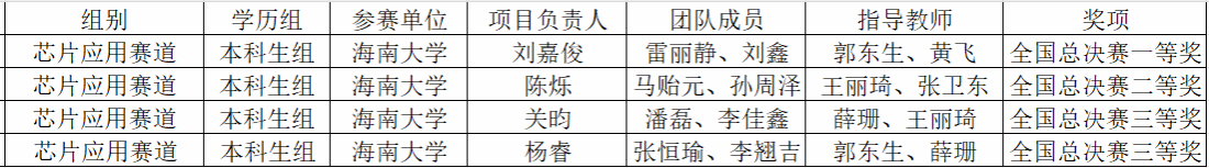 本站讯(记者 高可贺)8月10日至13日,第八届全国大学生嵌入式芯片与系统设计竞赛应用赛道全国总决赛在南京举办。海南大学信息与通信工程学院无人智能系统团队本科生刘嘉俊、雷丽静、刘鑫在郭东生、黄飞两位老师指导下荣获一等奖。此外,海南大学其他参赛队伍获二等奖1项、三等奖2项。