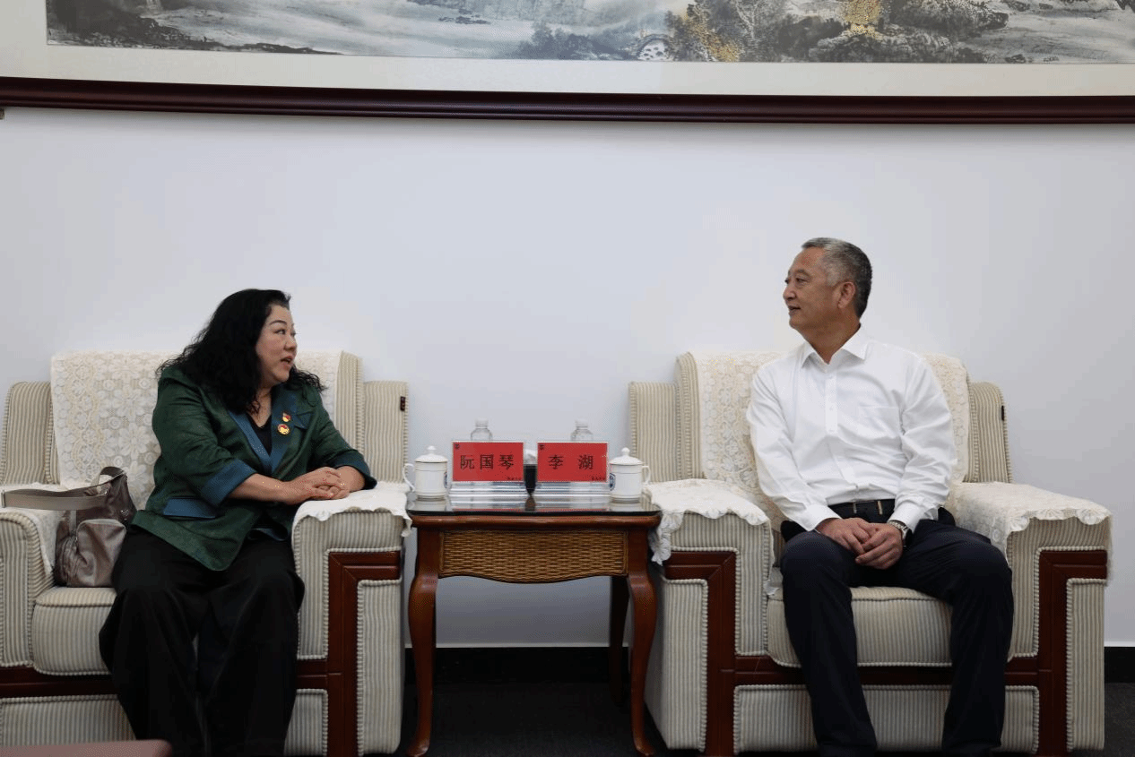 会前,校党委书记李湖在思源大礼堂会客厅会见阮国琴。
