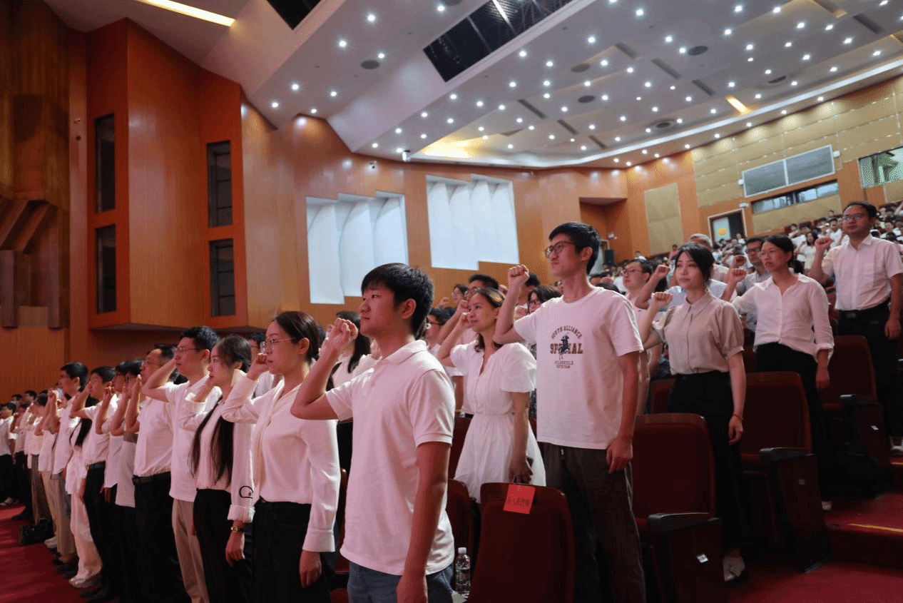 新入职教职工进行宣誓,学生代表、教师代表、荣休教师代表先后发言。
