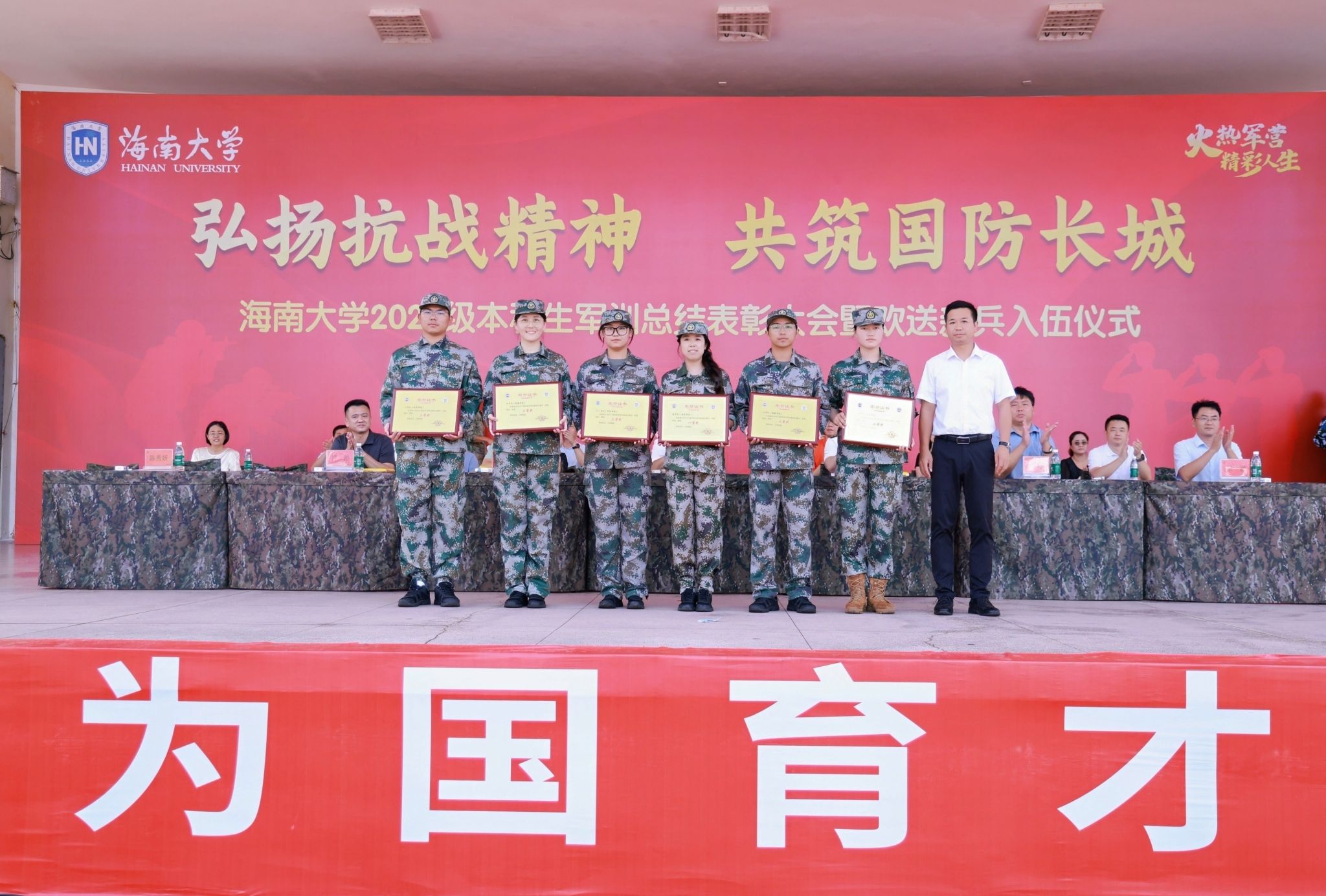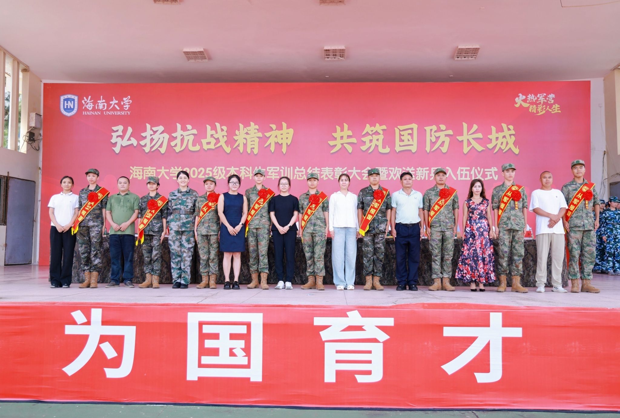 9月18日下午,海南大学2025级新生军训总结表彰大会暨欢送新兵入伍仪式在海甸校区举行。学生工作部(处) 供图