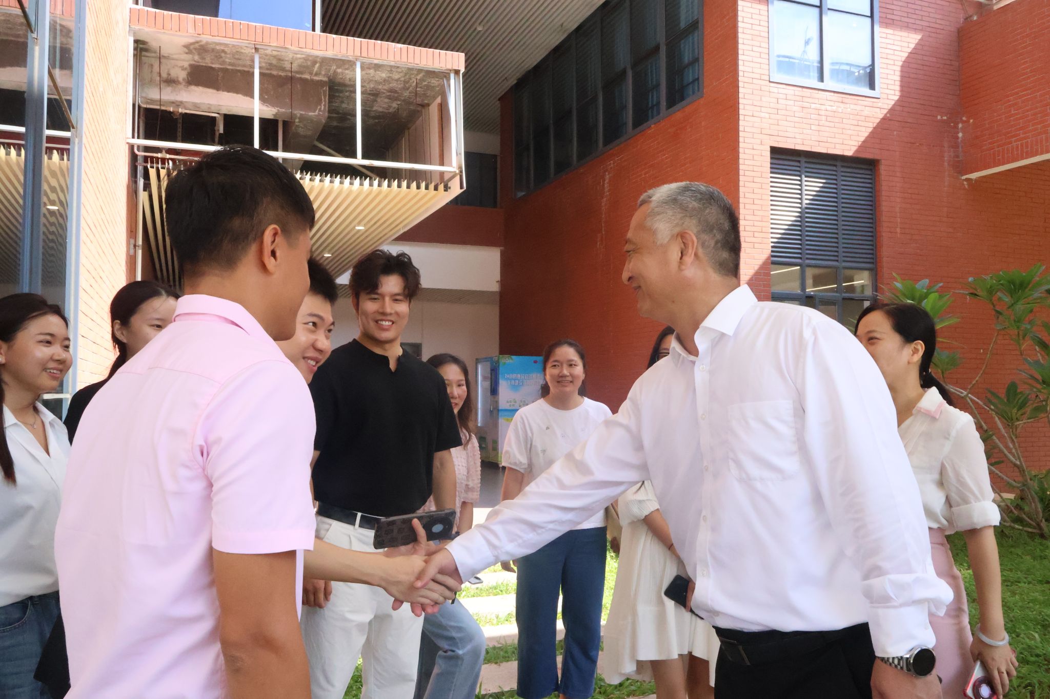9月23日,李湖调研观澜湖校区(含城西教学点)并部署防台风工作。这是李湖和观澜湖校区的师生在交流。宣传部 摄
