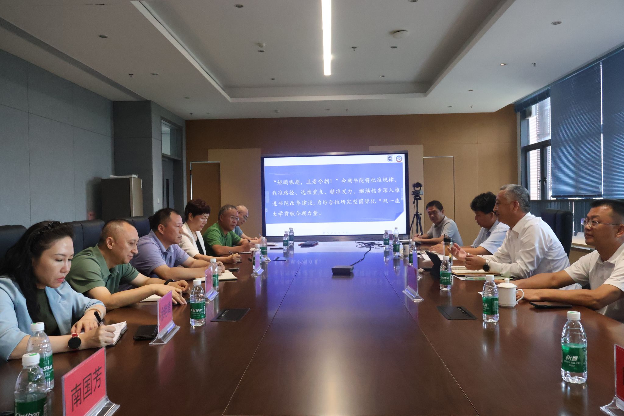 9月23日,李湖调研观澜湖校区(含城西教学点)并部署防台风工作。这是李湖主持召开座谈会。宣传部 摄