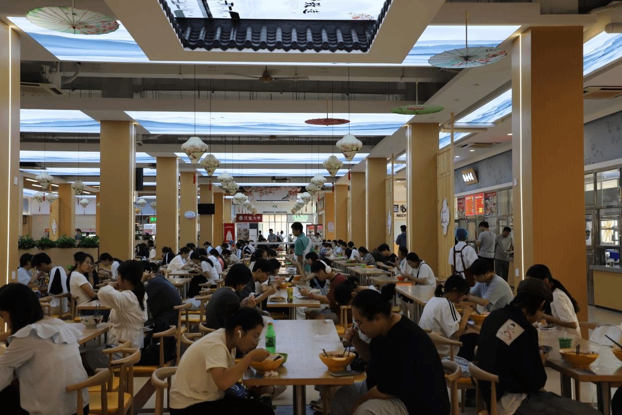 学校食堂正常营业,工作人员坚守岗位,对就餐区进行清洁消毒,全力保障师生用餐安全。