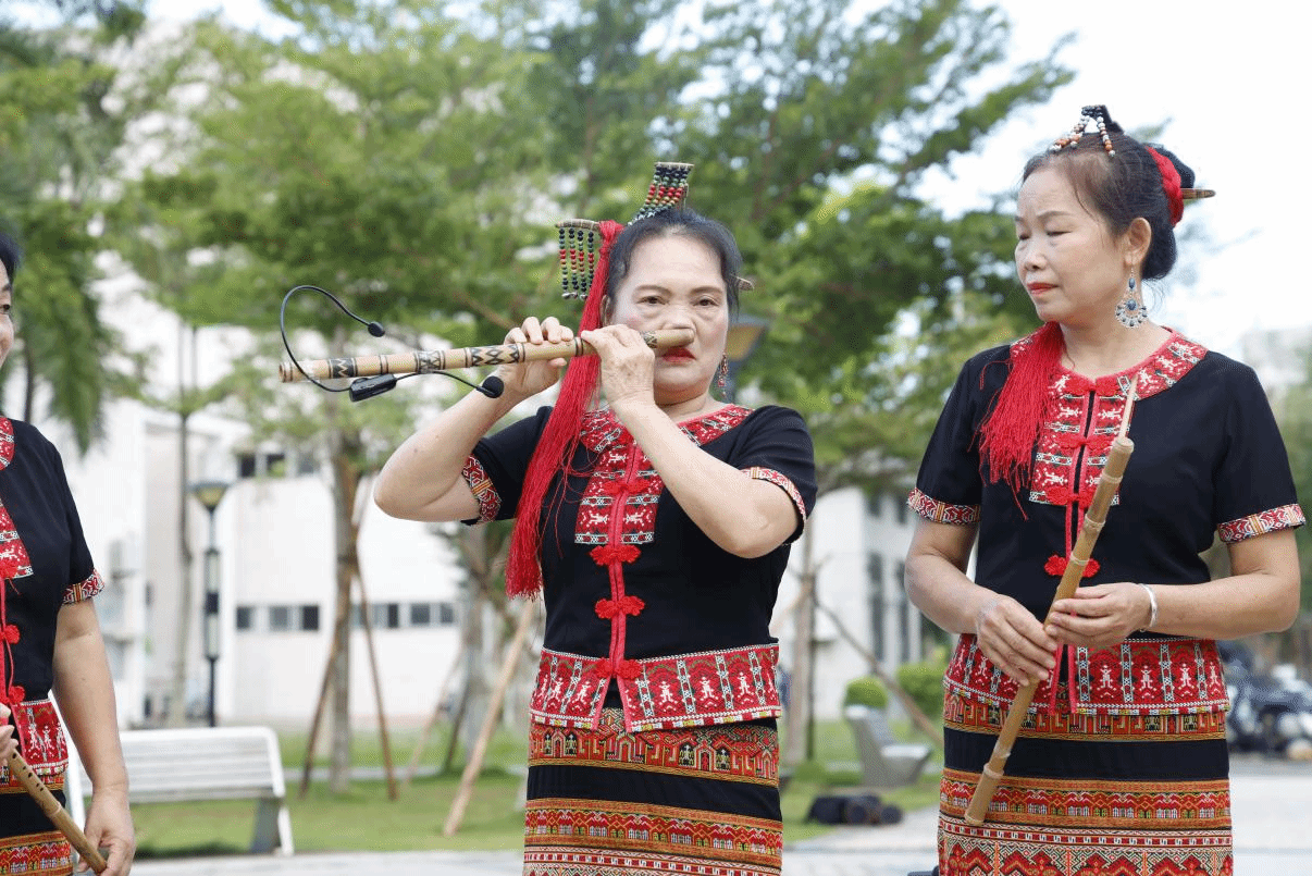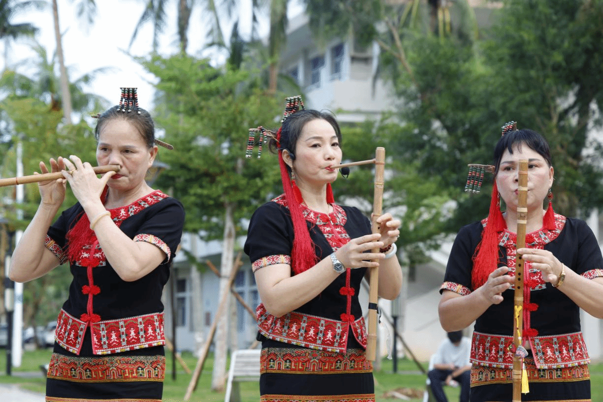 本站讯(记者 冯梦凡 高可贺)10月10日下午,海南大学青春记忆广场上,悠扬的黎族欧欧调民歌声声入耳。本学期首场“非遗进校园”特色课程——《非遗传承•黎族特色文化》人文通识课在此开课,七位来自黎族润方言、美孚方言和哈方言身着传统服装的民歌传唱人,为师生带来了一场沉浸式的文化体验课,让古老的非遗技艺在青春校园焕发新生。