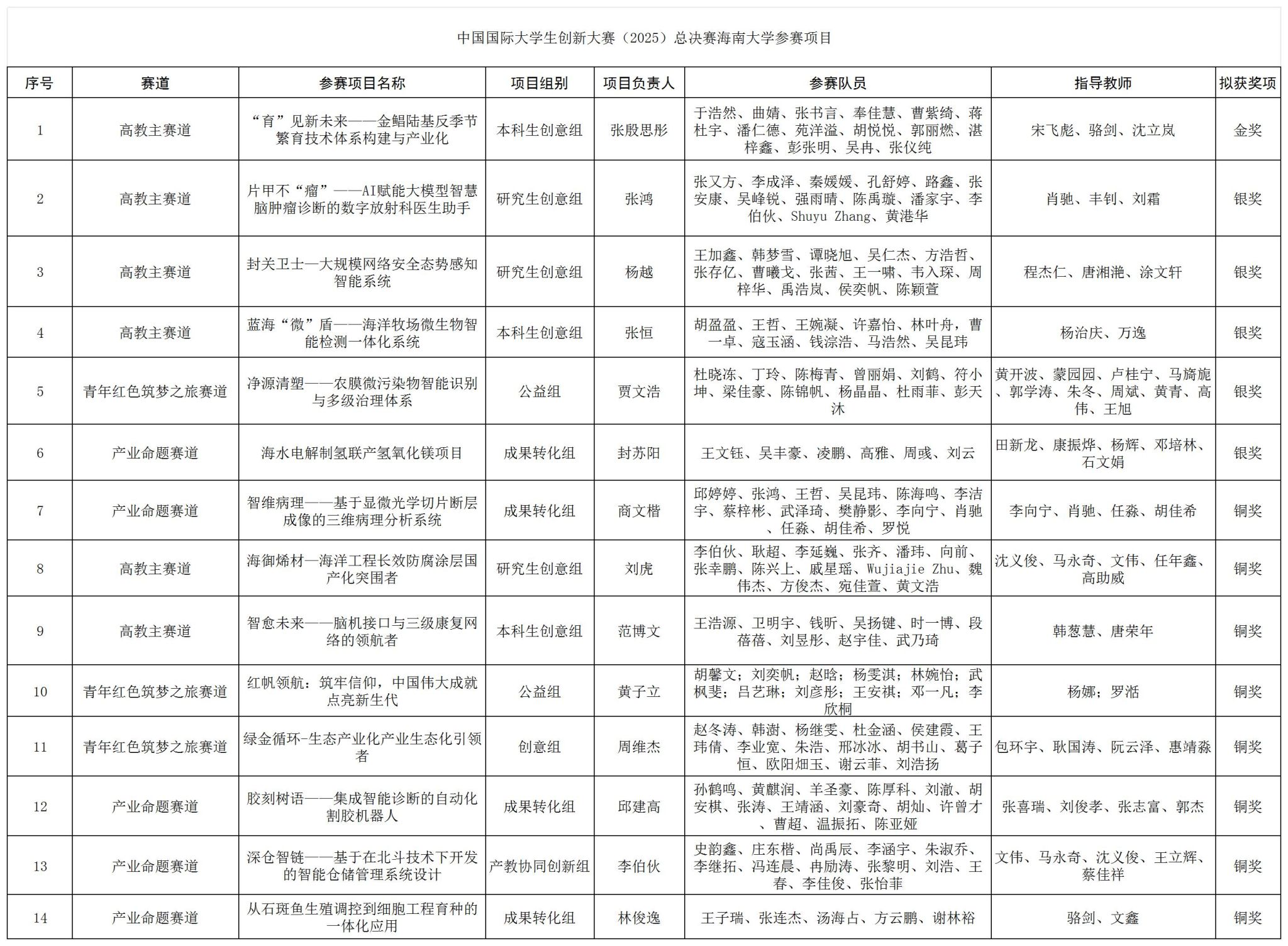 本站讯(记者 梁淑仪 通讯员 谢小峰)10月15日,中国国际大学生创新大赛(2025)总决赛在郑州大学落幕。海南大学参赛团队表现优异,获1项金奖,5项银奖,8项铜奖,金奖、银奖获奖数量创历年之最。“‘育’见新未来——金鲳陆基反季节繁育技术体系构建与产业化”项目获得高教主赛道本科生创意组金奖。
