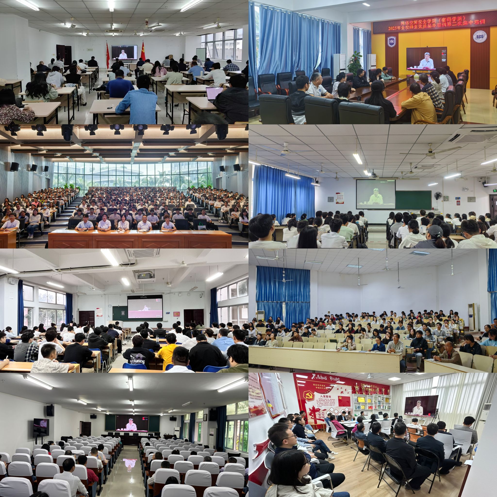 全校57个党组织共6100余名师生党员,分别在思源学堂大礼堂主会场以及66个分会场,同步学习教育部党组书记、部长怀进鹏主讲的“深入学习贯彻习近平总书记关于教育的重要论述 以教育强国支撑引领中国式现代化”的专题报告。