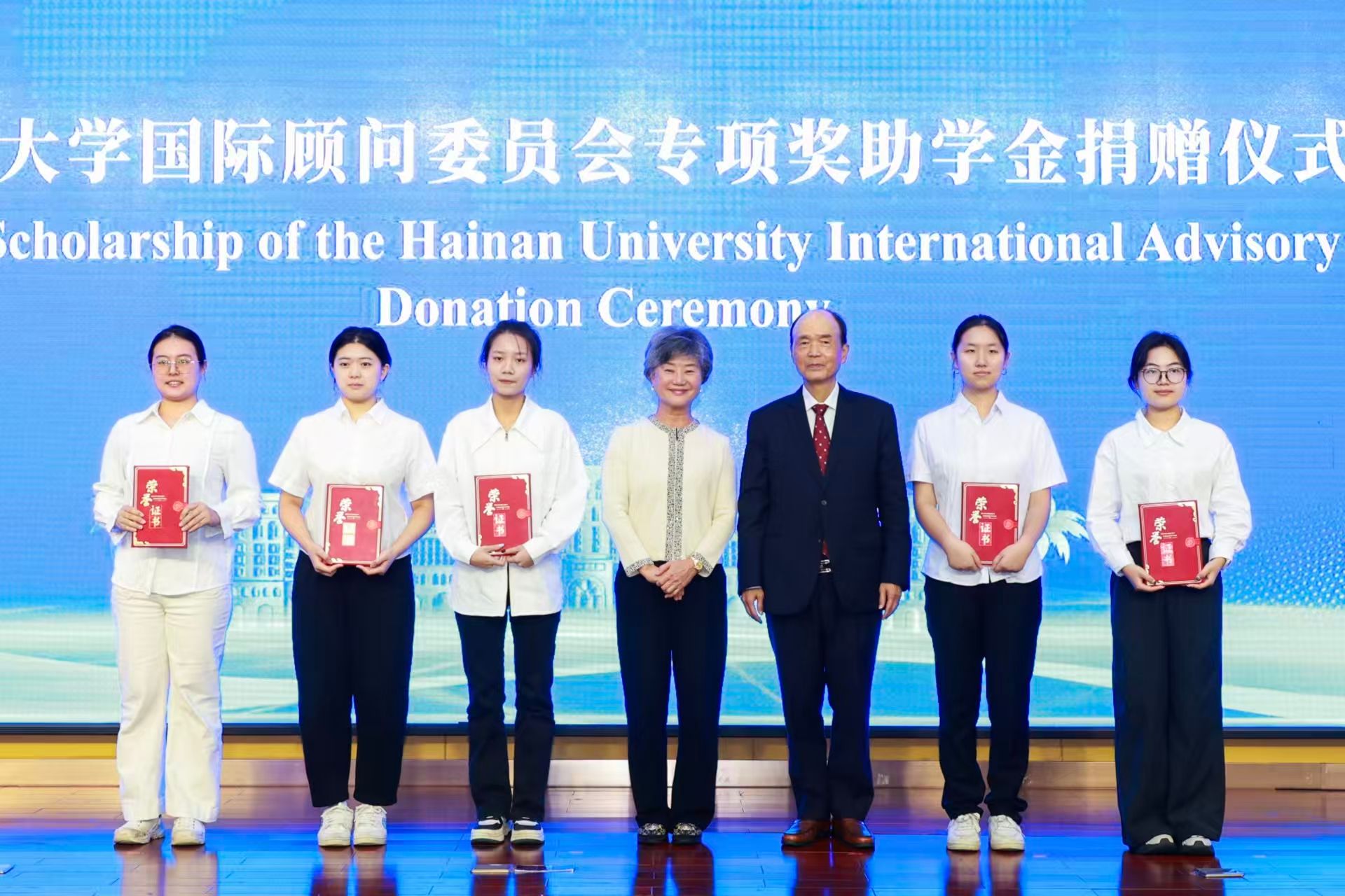 11月5日,海南大学国际顾问委员会第七次会议在国际学术交流中心召开。曾宪章、郑何淑圭为获得国际顾问委员会专项奖助学金的学生代表颁发荣誉证书。宣传部 摄