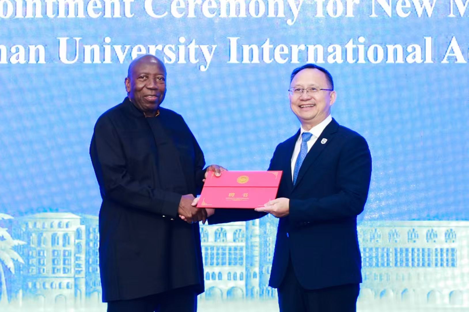 会上,骆清铭为国际顾问委员会新任委员菲利克斯·达帕雷·达科拉、穆罕默德·菲鲁兹·阿斯南(线上)、唐宁玉(线上)颁发聘书。