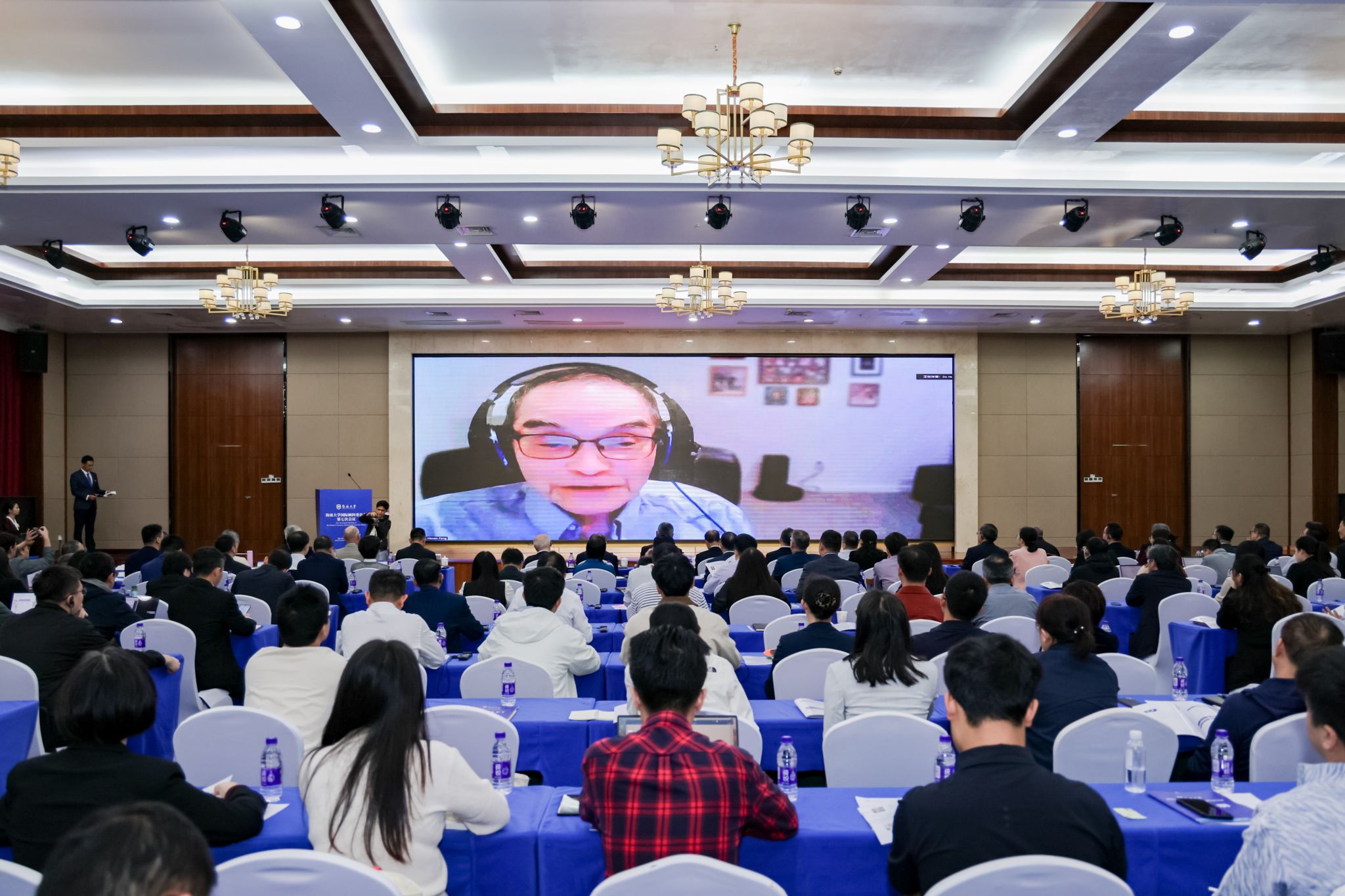 11月5日,海南大学国际顾问委员会第七次会议在国际学术交流中心召开。冯达旋(线上)作年度工作报告。宣传部 摄