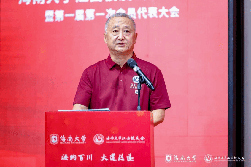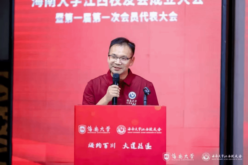 李湖代表学校向江西校友会的成立表示祝贺,向长期以来关心支持母校发展的校友们表示感谢。他从人才培养、科研创新、师资队伍、社会服务、国际合作等方面介绍学校“十四五”办学成绩。他表示,校友是学校事业发展的重要支撑力量,江西校友会的成立,既壮大了母校地方校友会的力量,又为广大在赣校友搭建联络情感、交流合作的平台。希望校友们,厚植“丹心耀南疆”的家国情怀、筑牢“命运共同体”的发展根基、扛起“和睦幸福家”的责任担当,欢迎广大校友到自贸港兴业,常回母校看看。