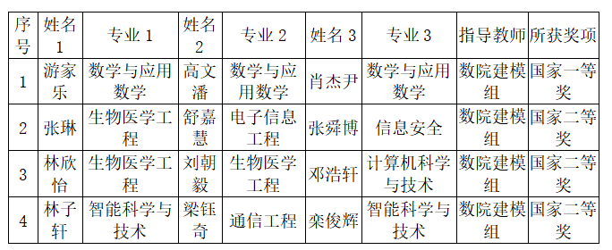 2025年全国大学生数学建模竞赛海南大学获奖名单。