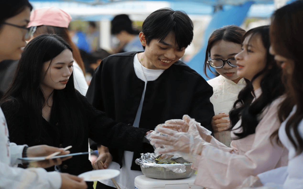 11月29日下午,海南大学举办2025年国际青年文化节。学生体验特色美食。赵星辰 摄