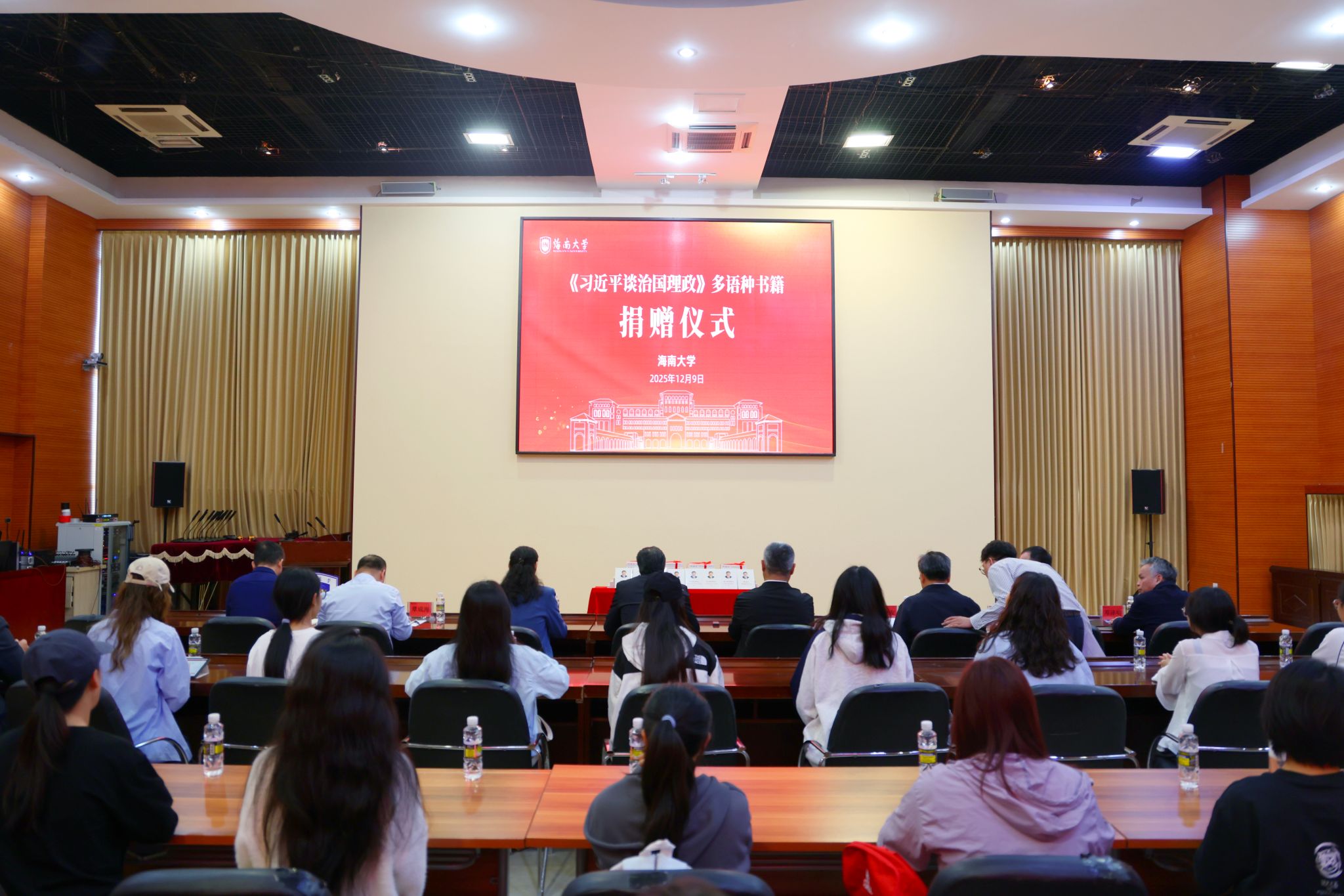12月9日上午,《习近平谈治国理政》多语种书籍捐赠仪式在海南大学思源学堂多功能厅举行。捐赠现场。段添月 摄