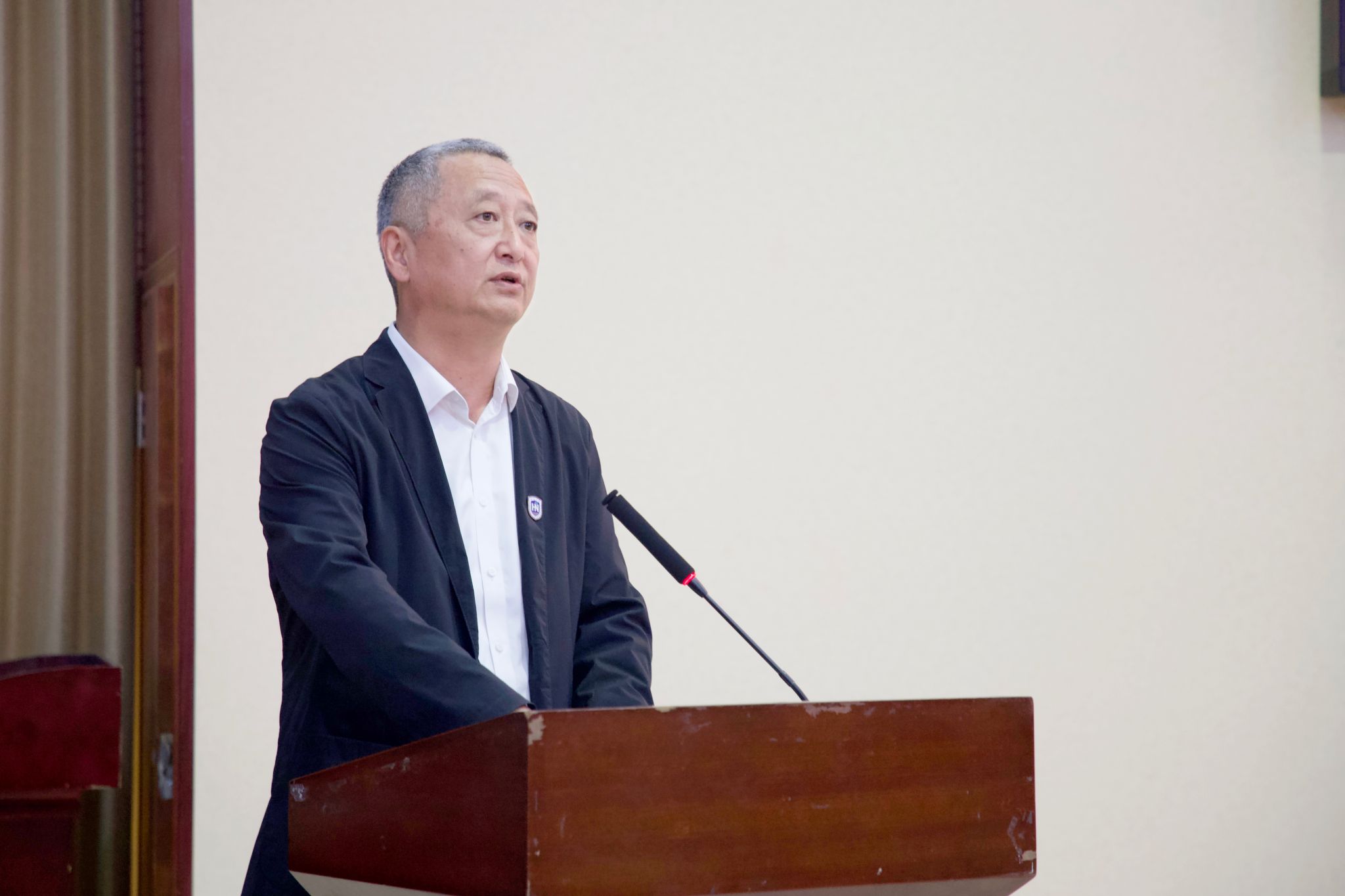12月9日上午,《习近平谈治国理政》多语种书籍捐赠仪式在海南大学思源学堂多功能厅举行。李湖讲话。段添月 摄