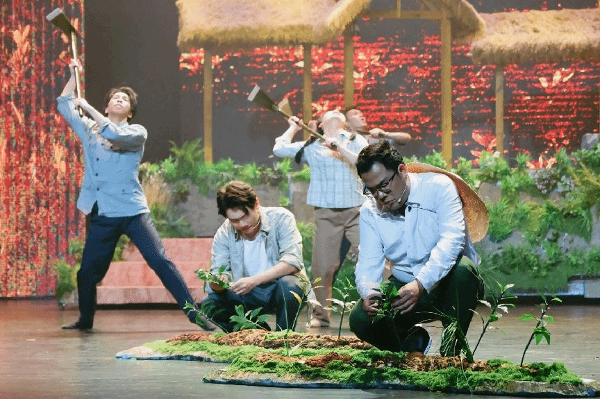 音乐剧通过多个富有戏剧张力的场面,细腻刻画了老一辈科学家的信仰坚守与使命担当。1957年除夕夜,专家何康接到紧急调令需即刻南下,面对家人的担忧与不舍,他藏起离愁别绪,义无反顾踏上征程;面对“北纬 15°以北不能种植橡胶”的国际禁区定论,他们以科学家的无畏勇气与严谨精神,誓要打破桎梏、为国拓荒;剧中,艰苦的山野生活、肆虐的台风灾害、科研路上的屡败屡战,一次次考验着科研工作者的热血与信念,但他们始终初心不改、矢志不渝。