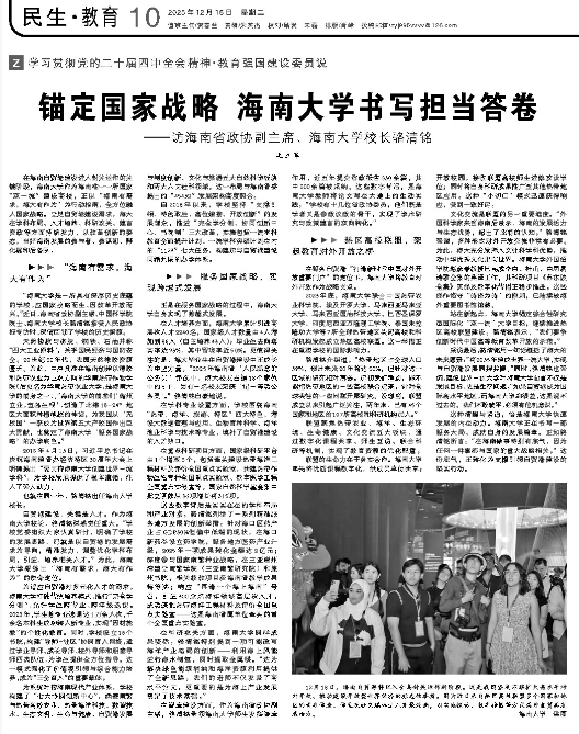 这种清醒与紧迫,恰是海南大学快速发展的内在动力。海南大学正在书写一部服务大局、成就自身的发展篇章。正如骆清铭所言:“在海南做事特别有底气,因为任何一件事都与国家的重大战略相关。”这份底气,正转化为支撑引领自贸港建设的坚实行动。