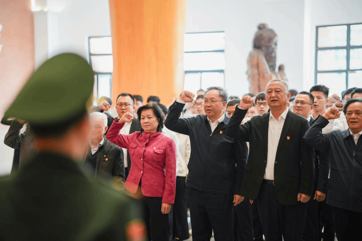 12月18日上午,海南大学2025年新党员入党宣誓仪式暨“奋进自贸港 丹心耀南疆”主题党日活动在校史馆举行。全体党员宣誓。周铭轩摄